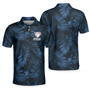 Black And Navy Blue Tropical Pattern Golf Polo Shirt Men's Polo Shirt S-5XL