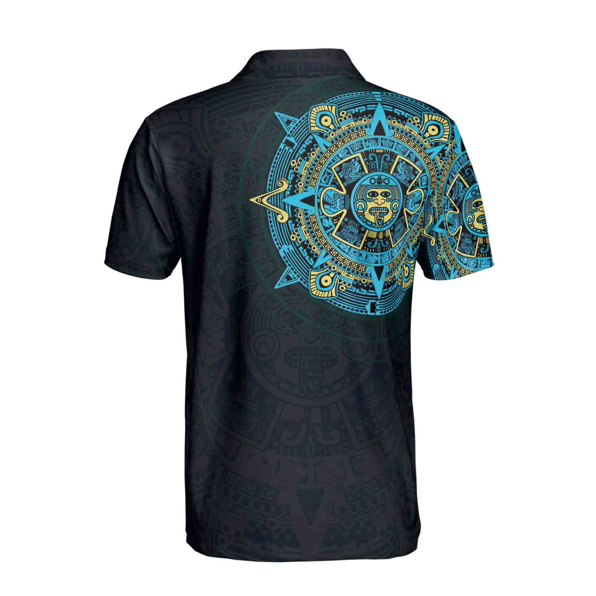 Blue Mexico Viking Tattoo Aztec Men's Polo Shirt Size S-5XL