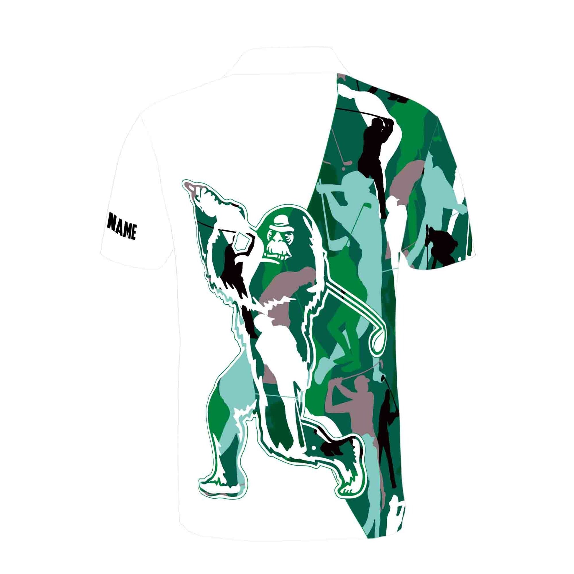 Custom Green Camo Bigfoot Golf Name Men's Polo Shirt S-5XL