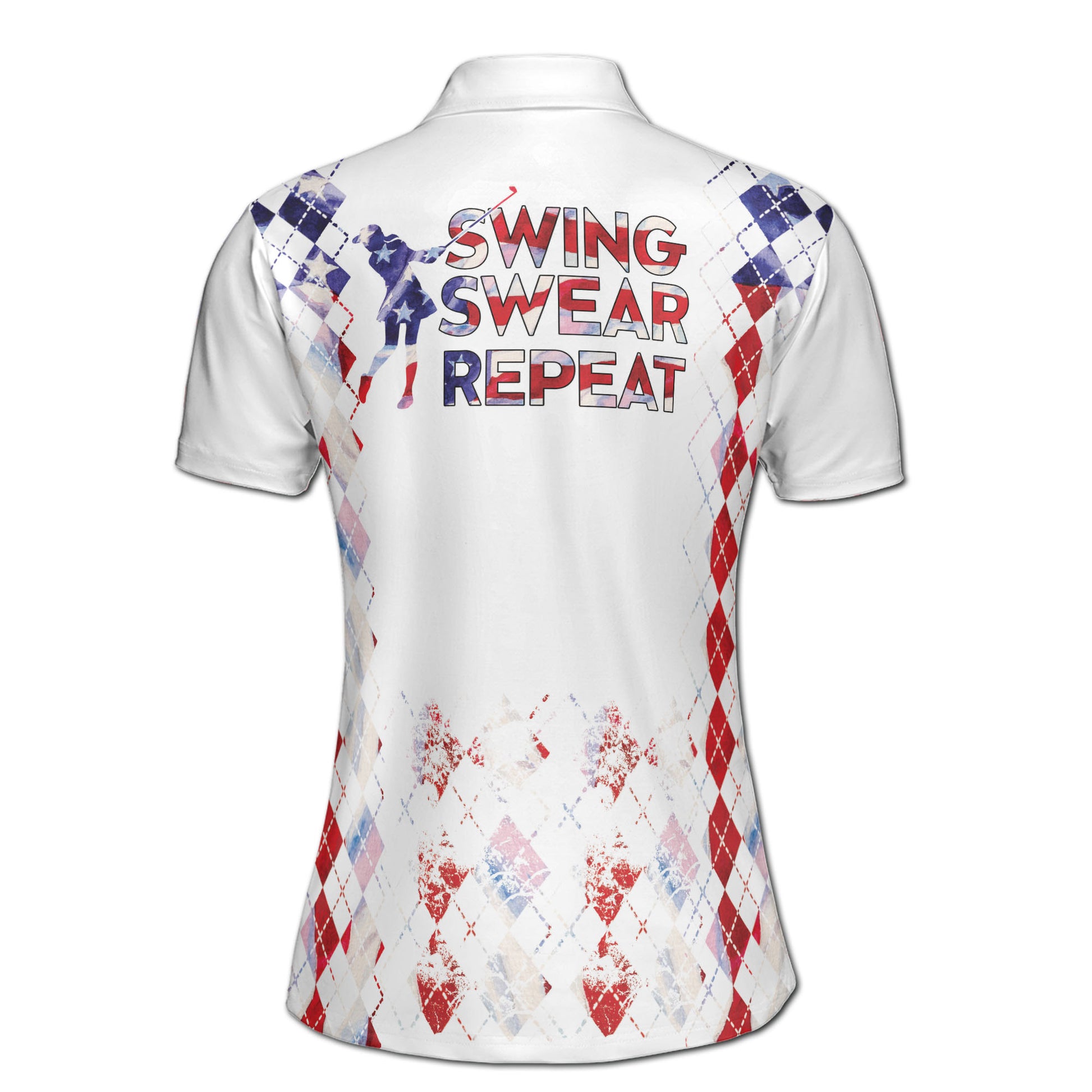 Custom Name America Argyle Swing Swear Repeat Golf Women's Polo Shirt