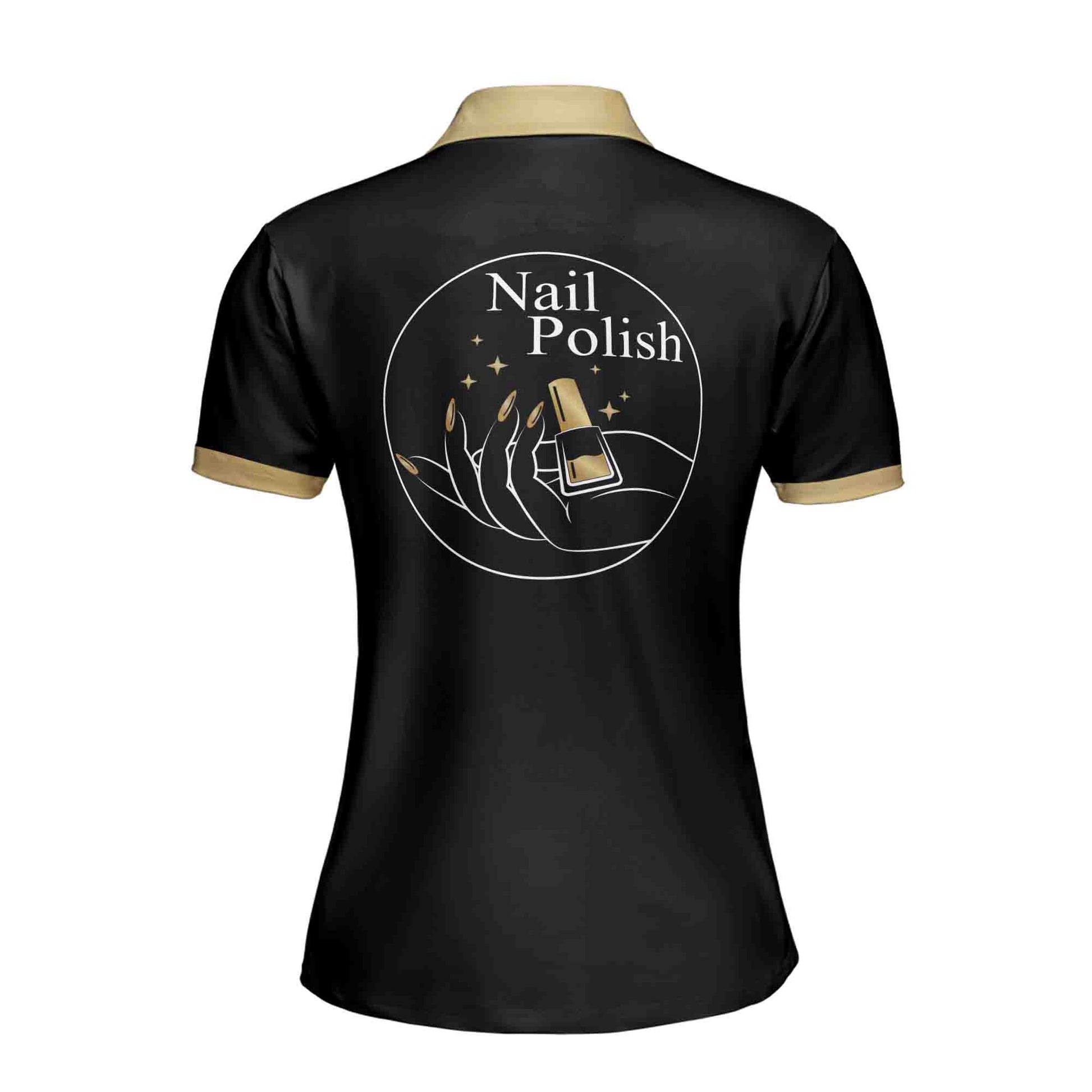 Custom Name Nail Polish Black with Gold Women's Polo S-5XL