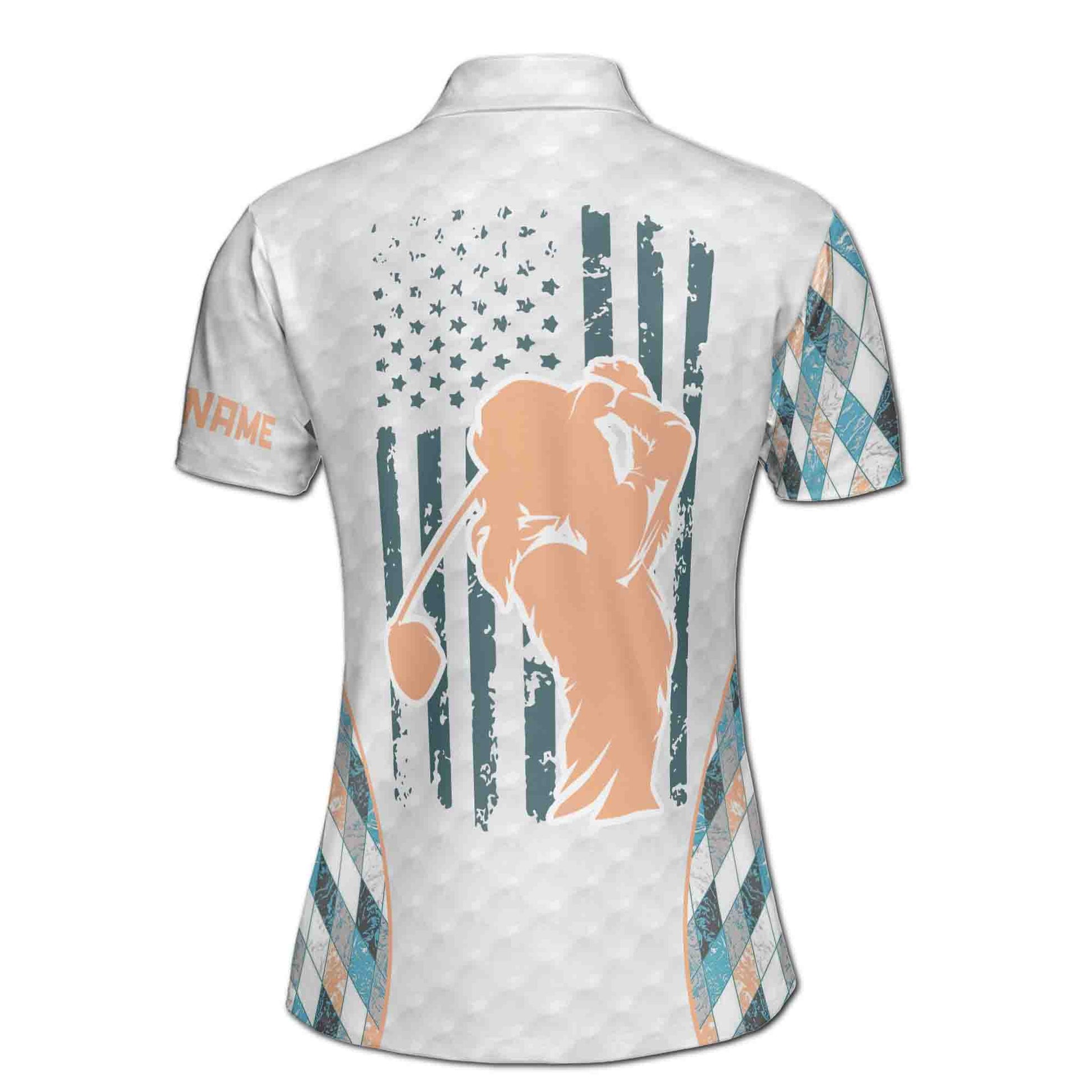 Custom Name Retro Argyle America Lady Golfer Women's Polo S-5XL