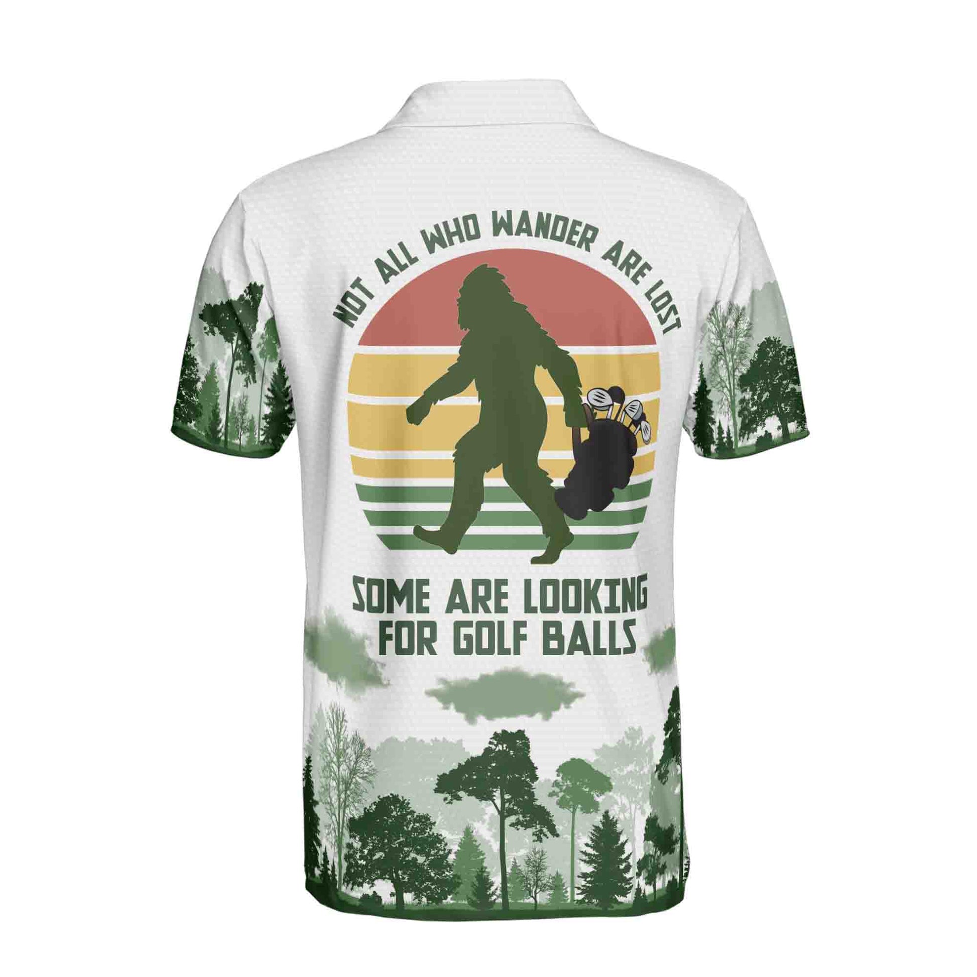 Custom Name Big Foot Sasquatch Looking For Golf Balls 3D Men's Polo Shirt S-5XL
