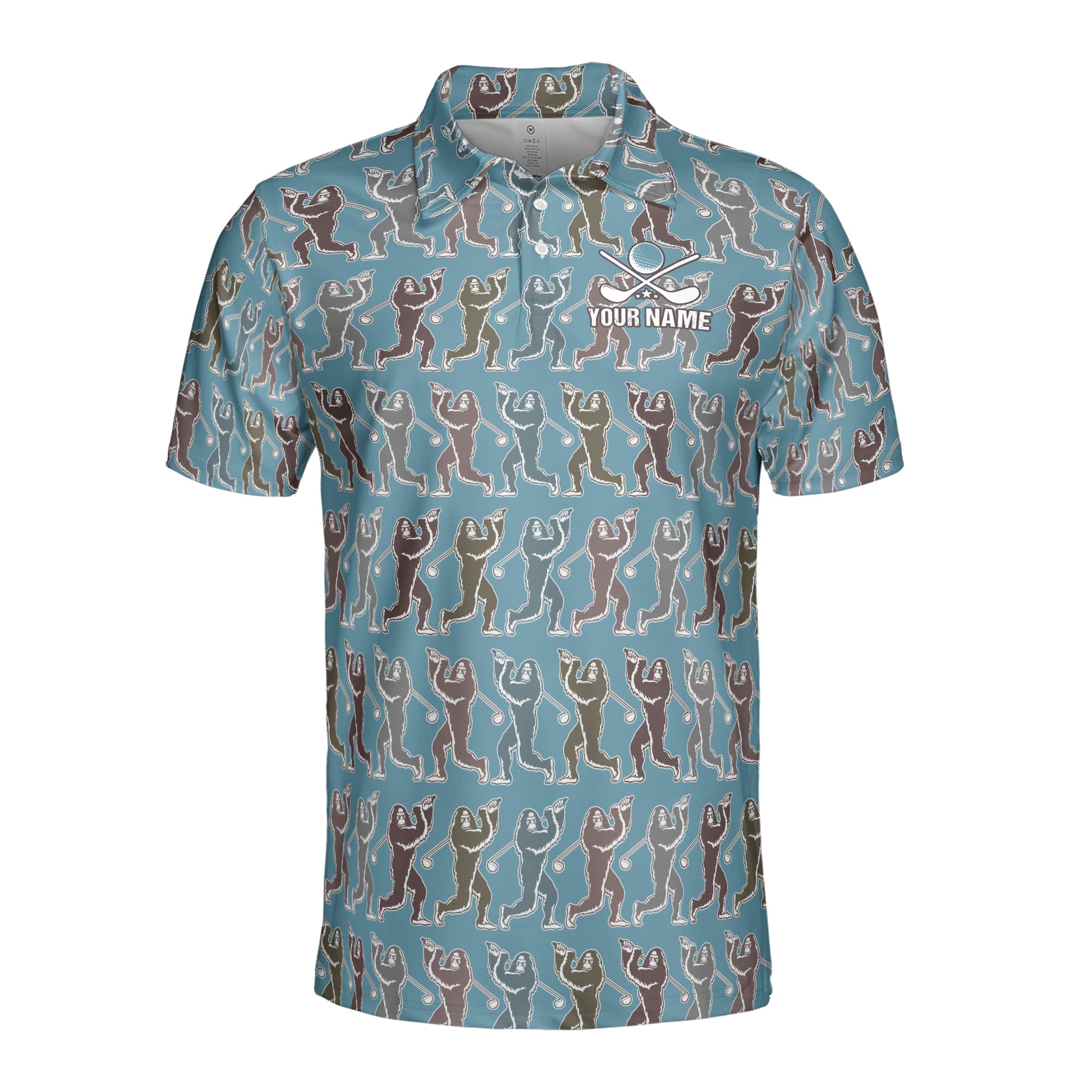 Custom Name Bigfoot Monkey Golf Ocean Blue Men's Polo S-5XL