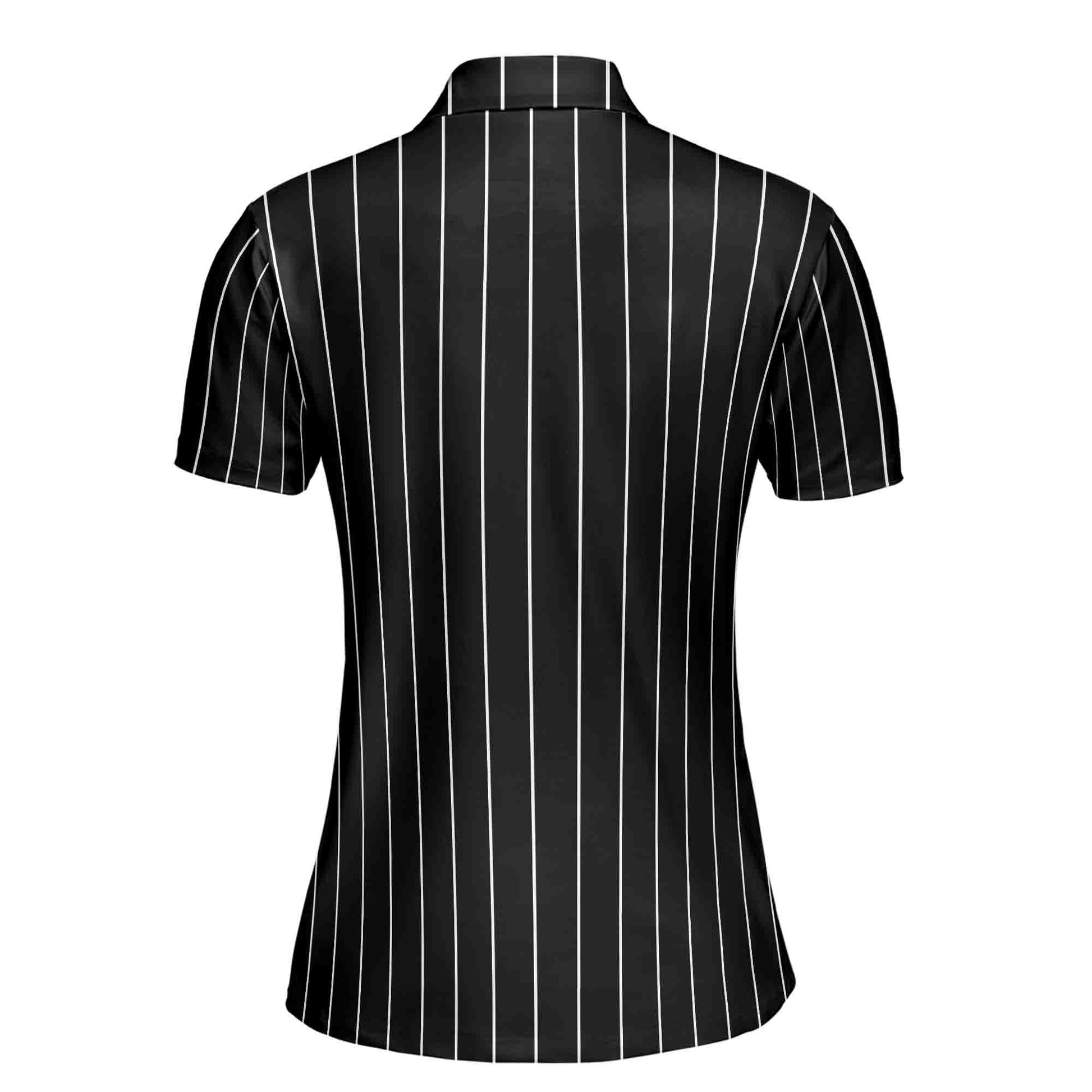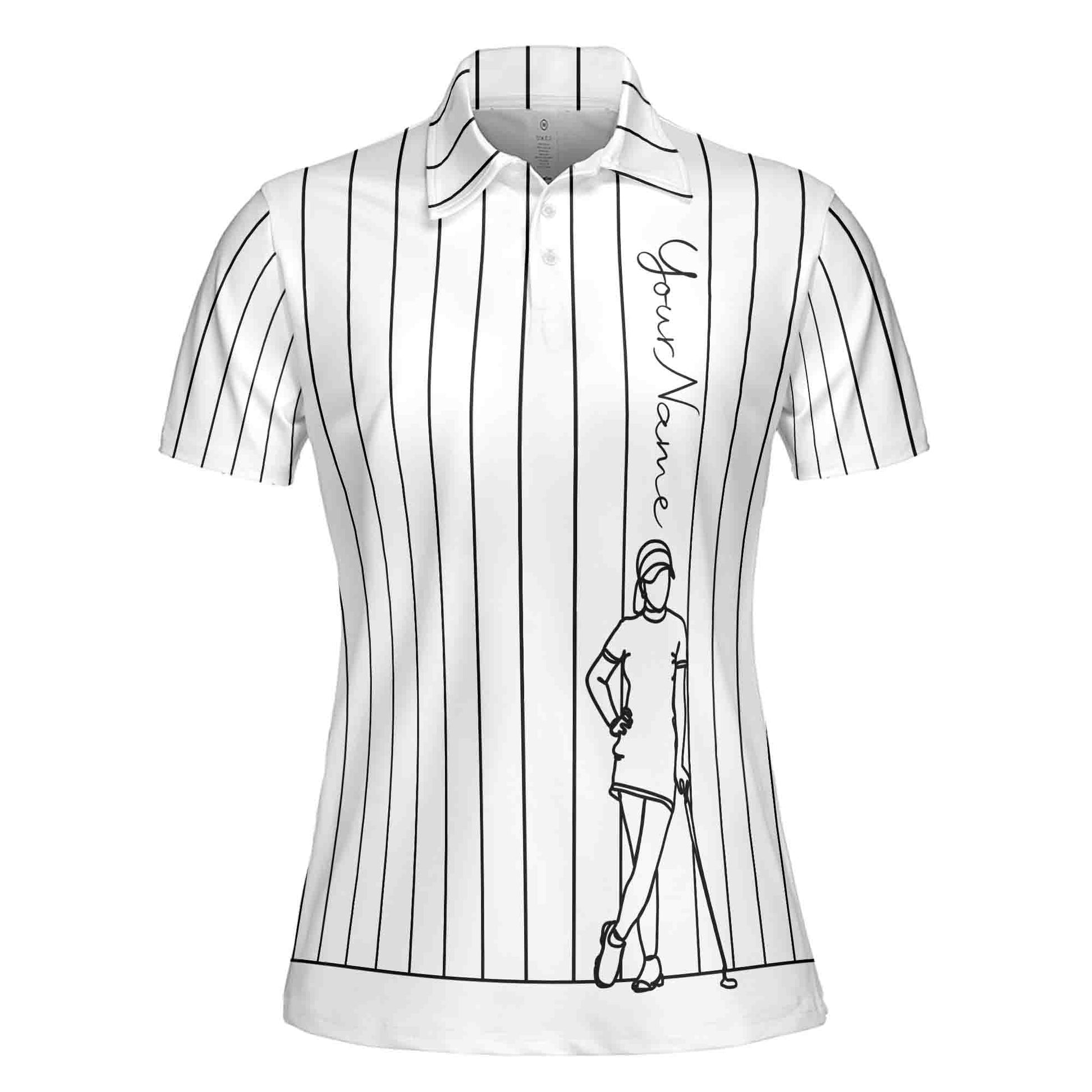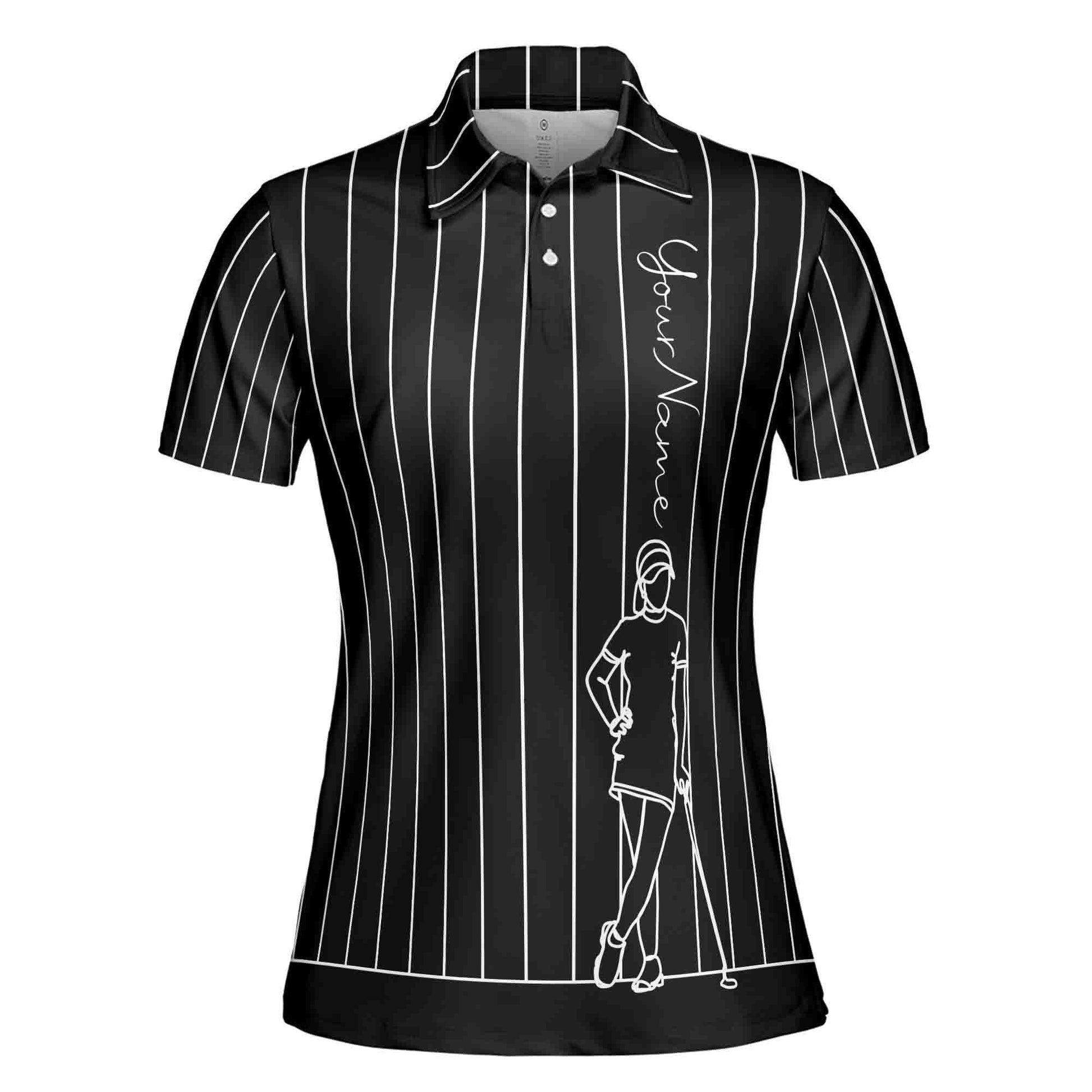 Custom Name Black And White Stripe Drawing Golf Women's Polo Shirt S-5XL
