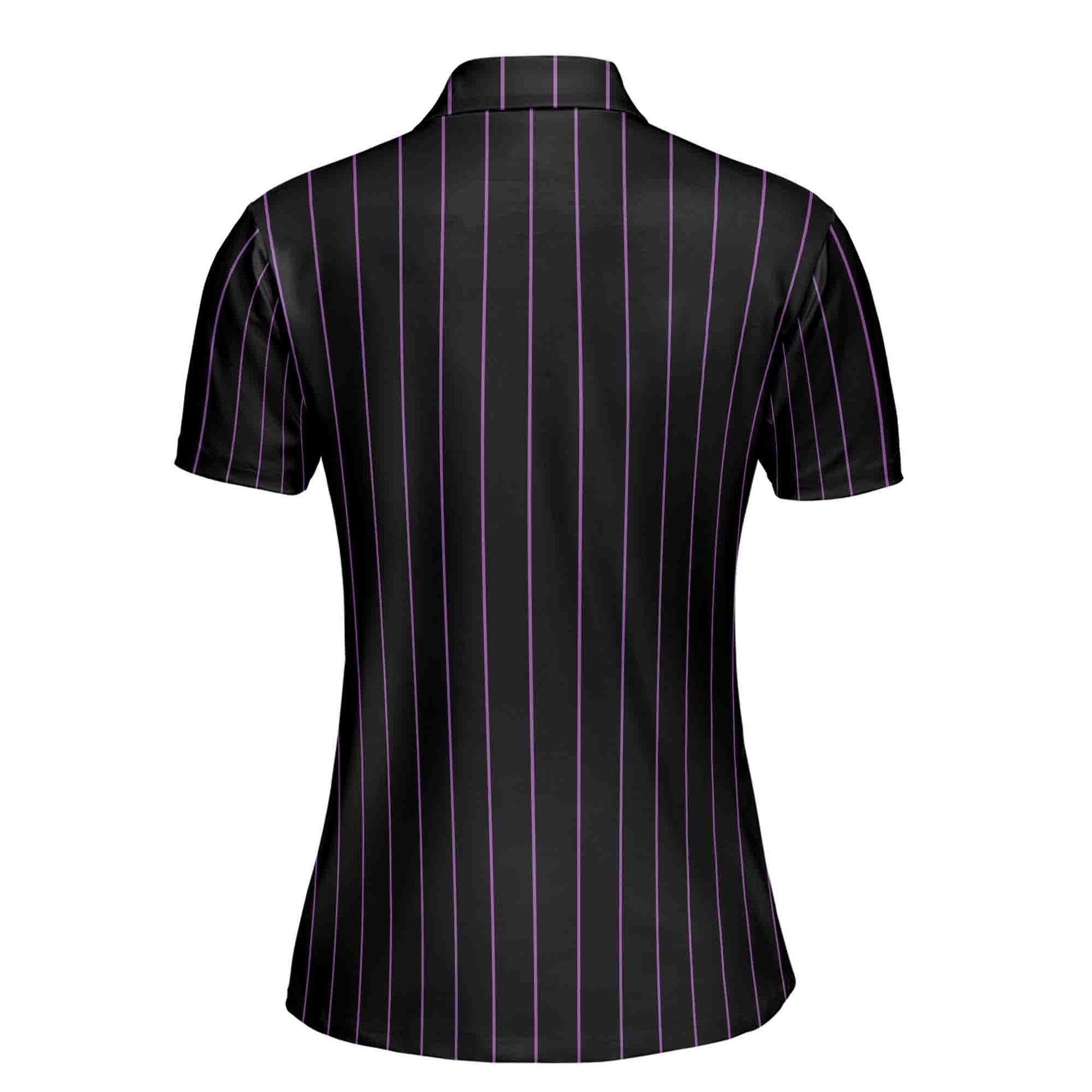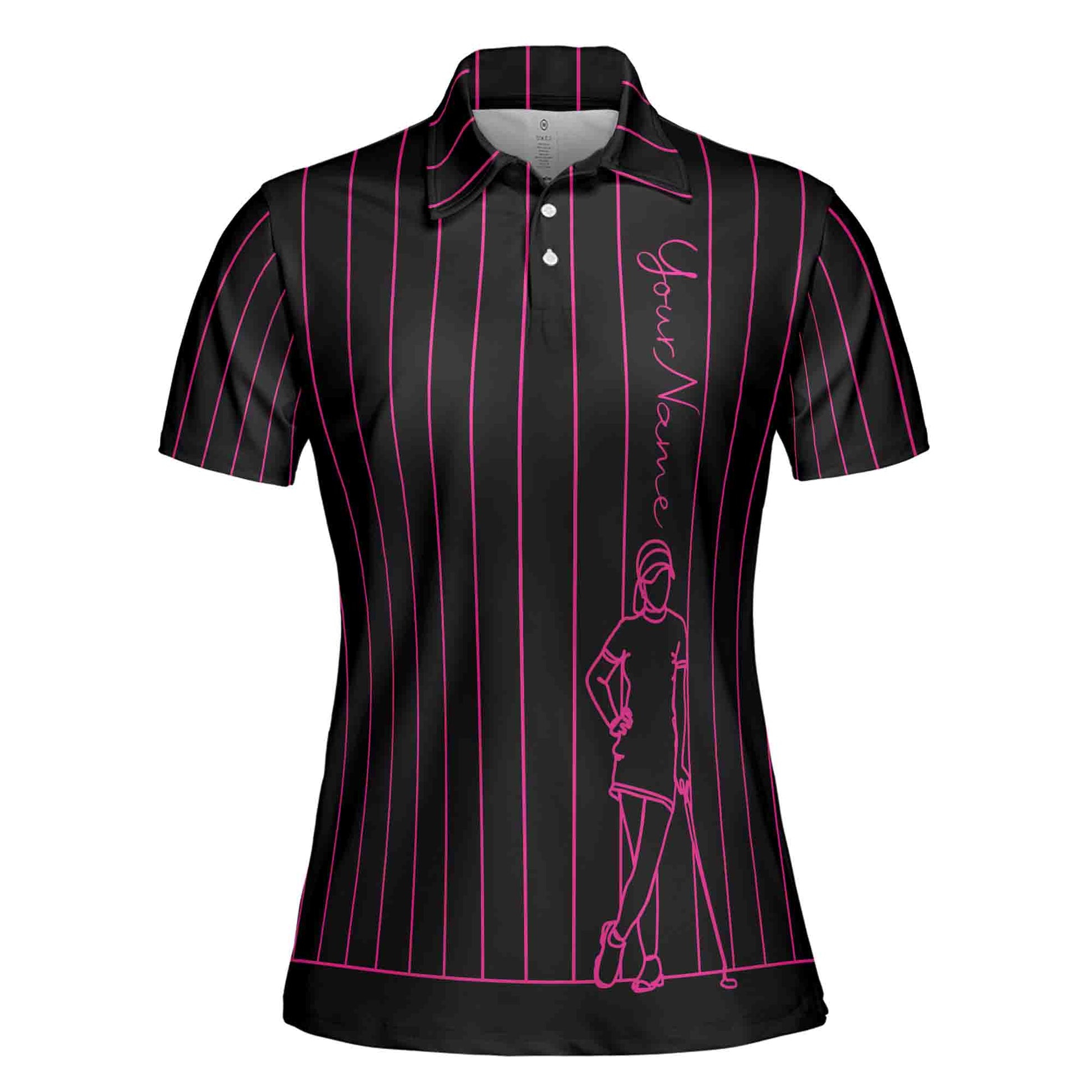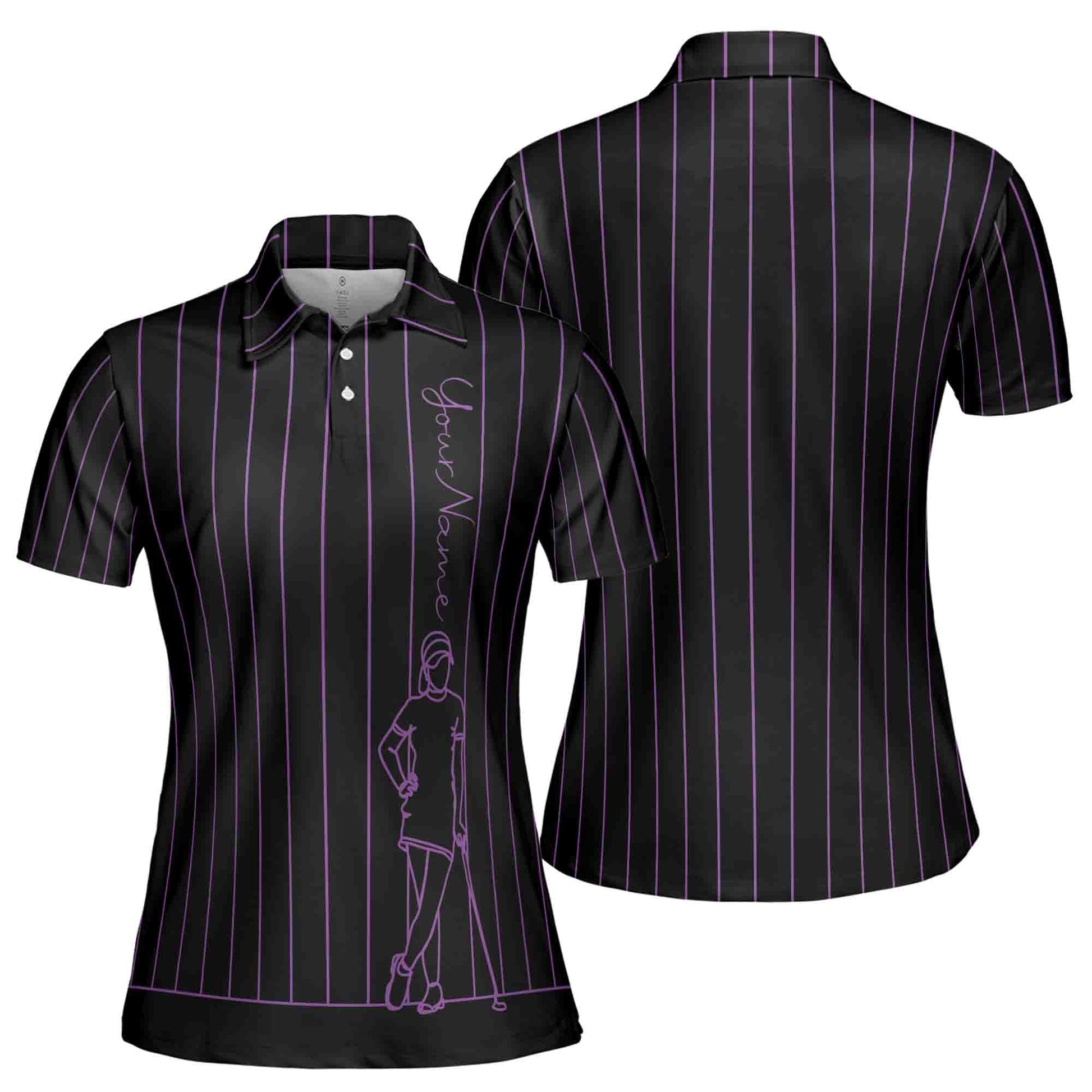 Custom Name Black And White Stripe Drawing Golf Women's Polo Shirt S-5XL