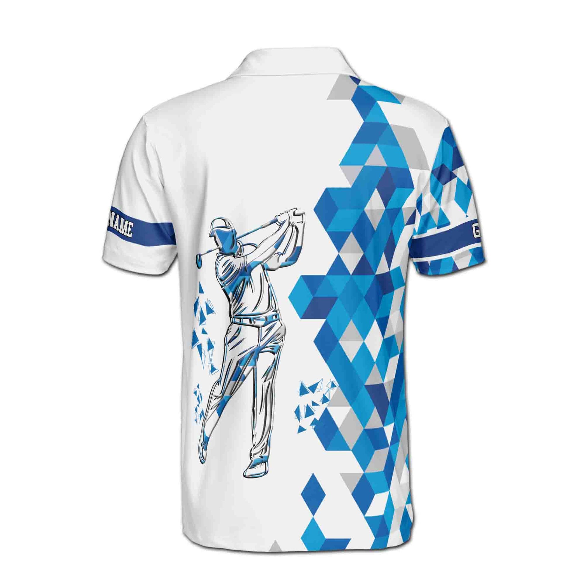 Custom Name Blue Diamond Pattern Golfer Men's Polo Shirt S-5XL
