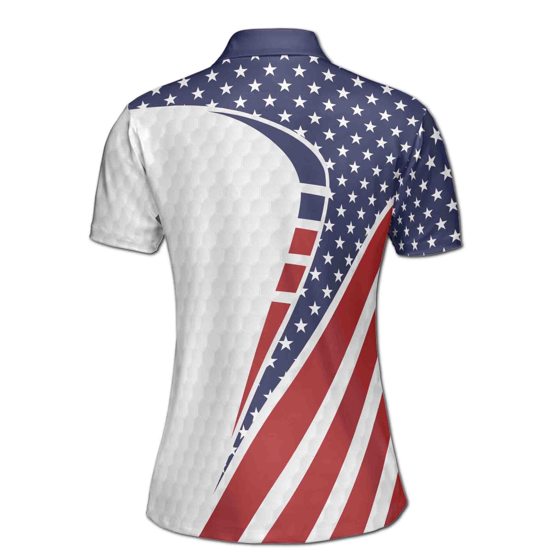 Custom Name Blue Red White America Flag Pattern Golf Women's Polo Shirt S-5XL