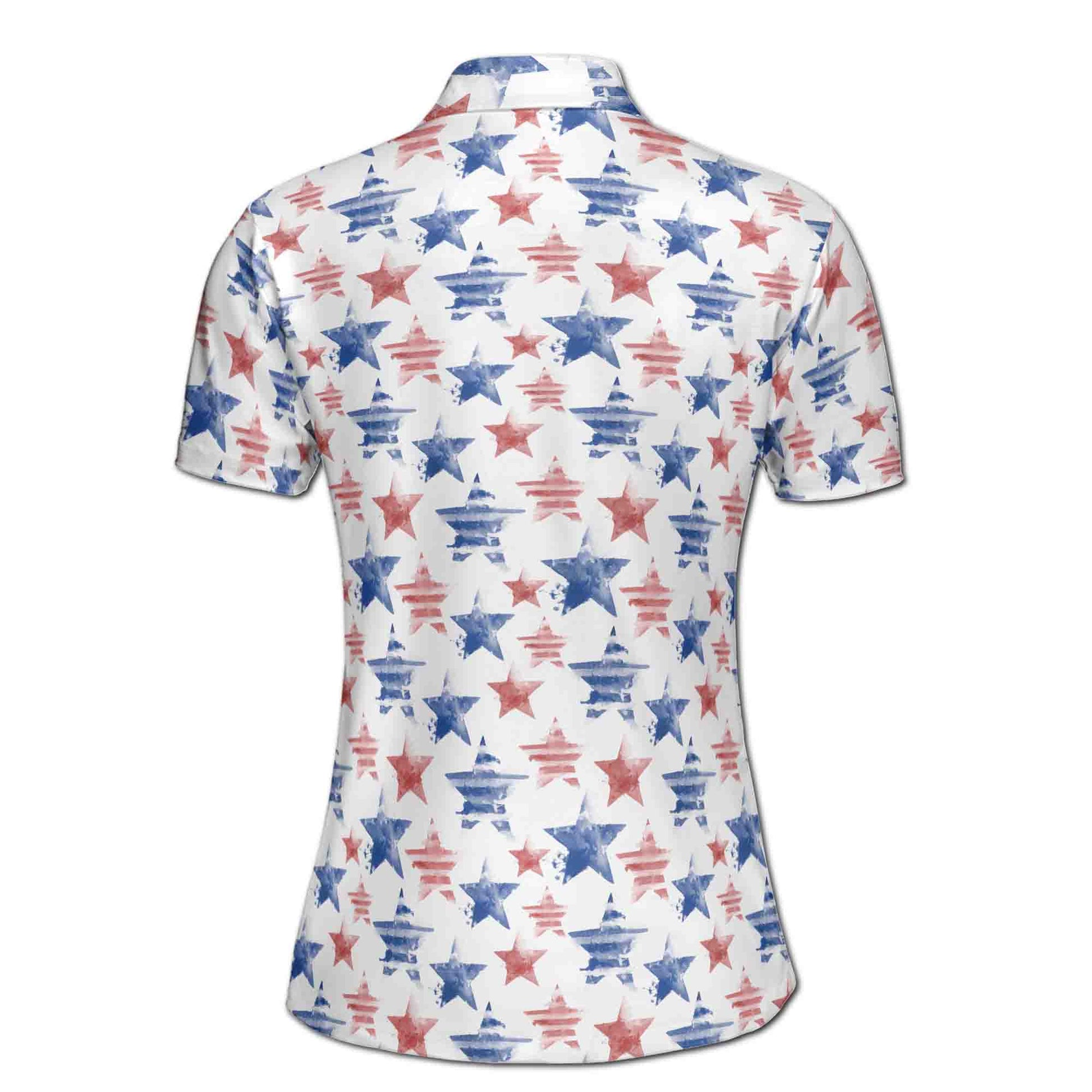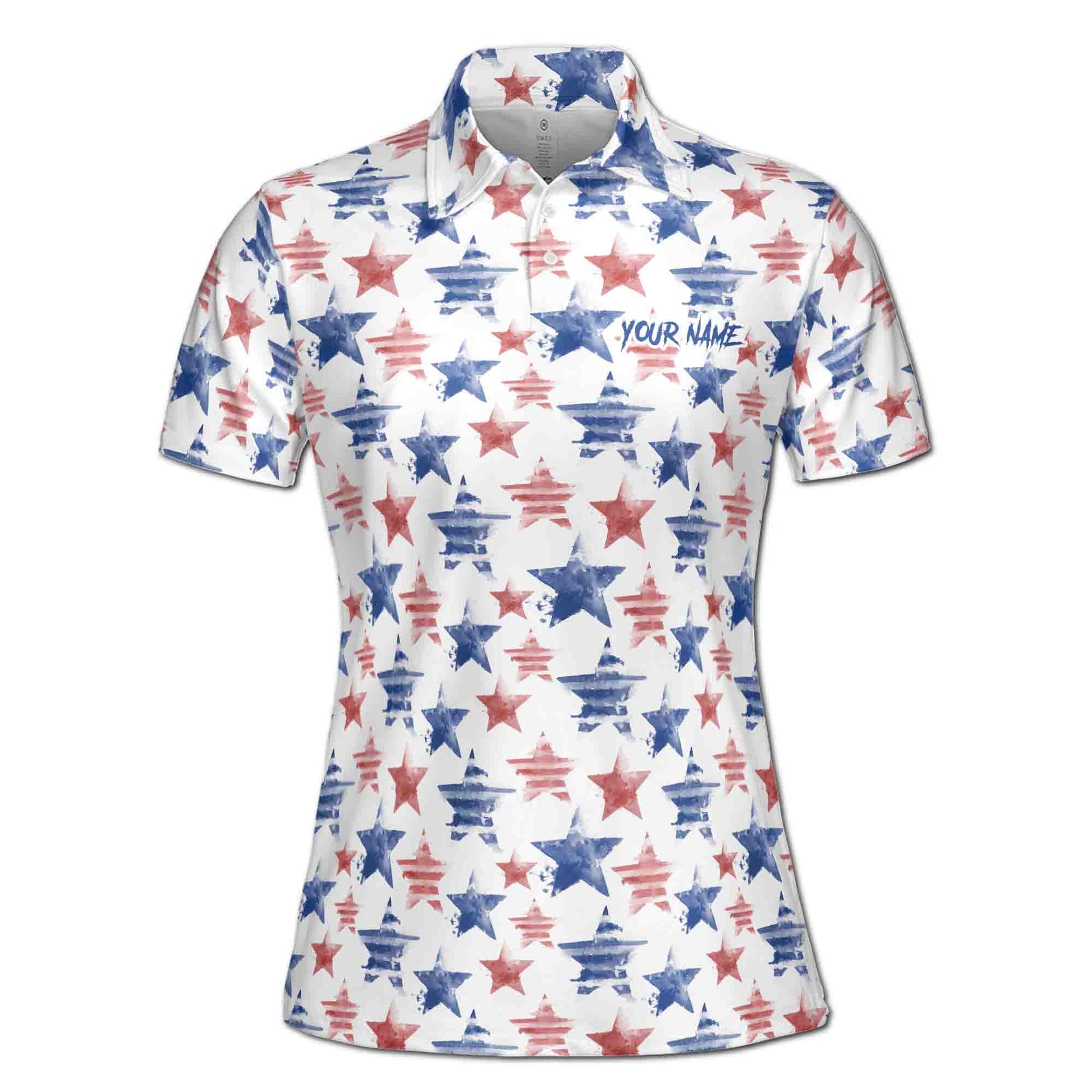 Custom Name Watercolor America Star Golf National Pride Women's Polo Shirt S-5XL