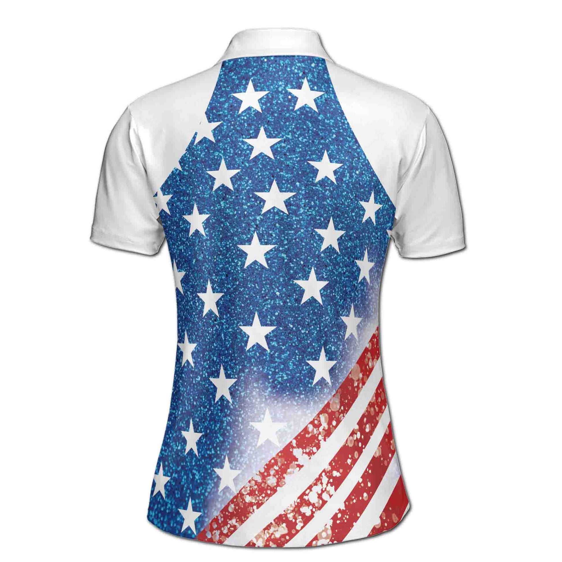 Custom Name America Flag Glitter Pattern Golf National Pride Women's Polo Shirt S-5XL