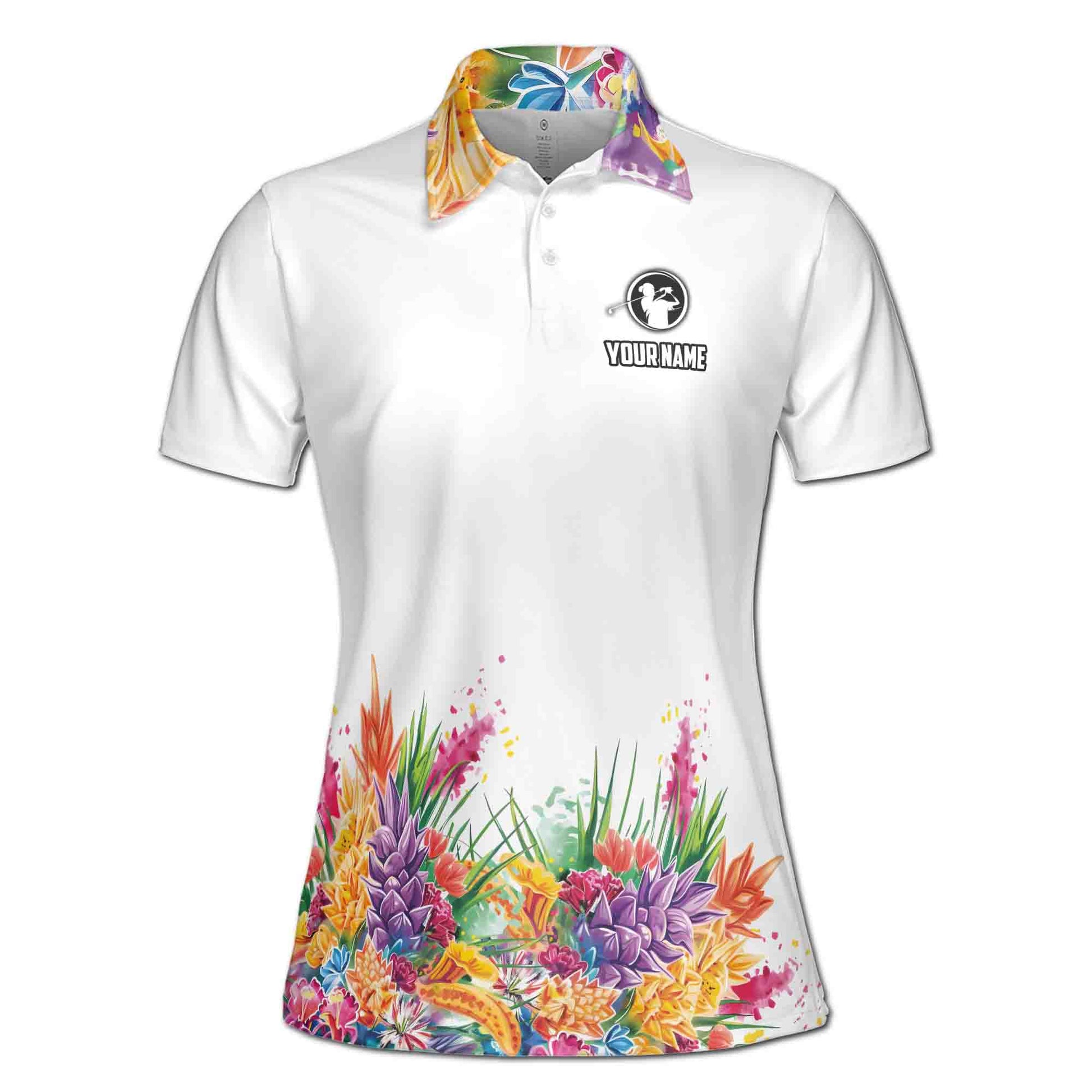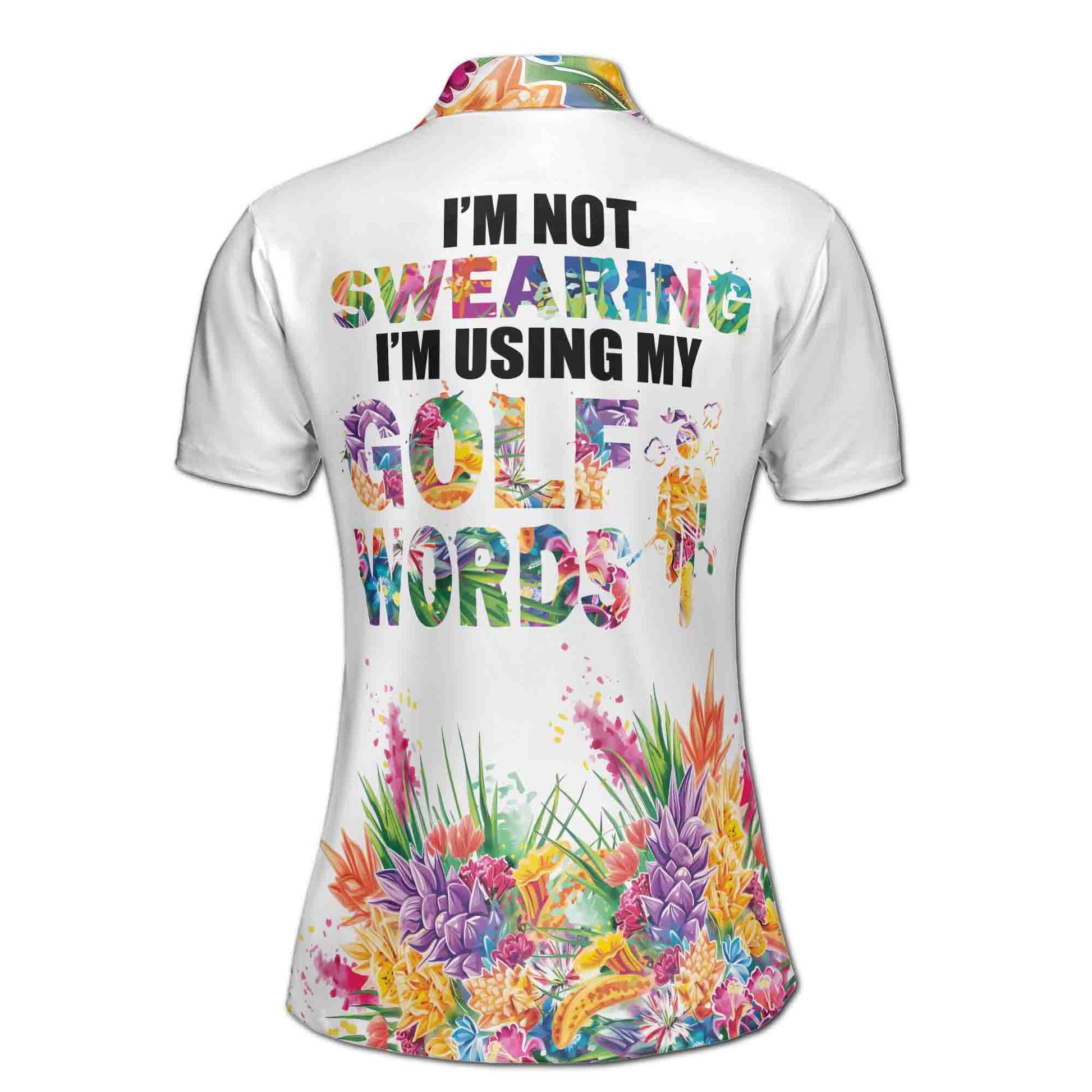 Custom Name Colorful Flower I'm Using My Golf Words Women's Polo Shirt S-5XL