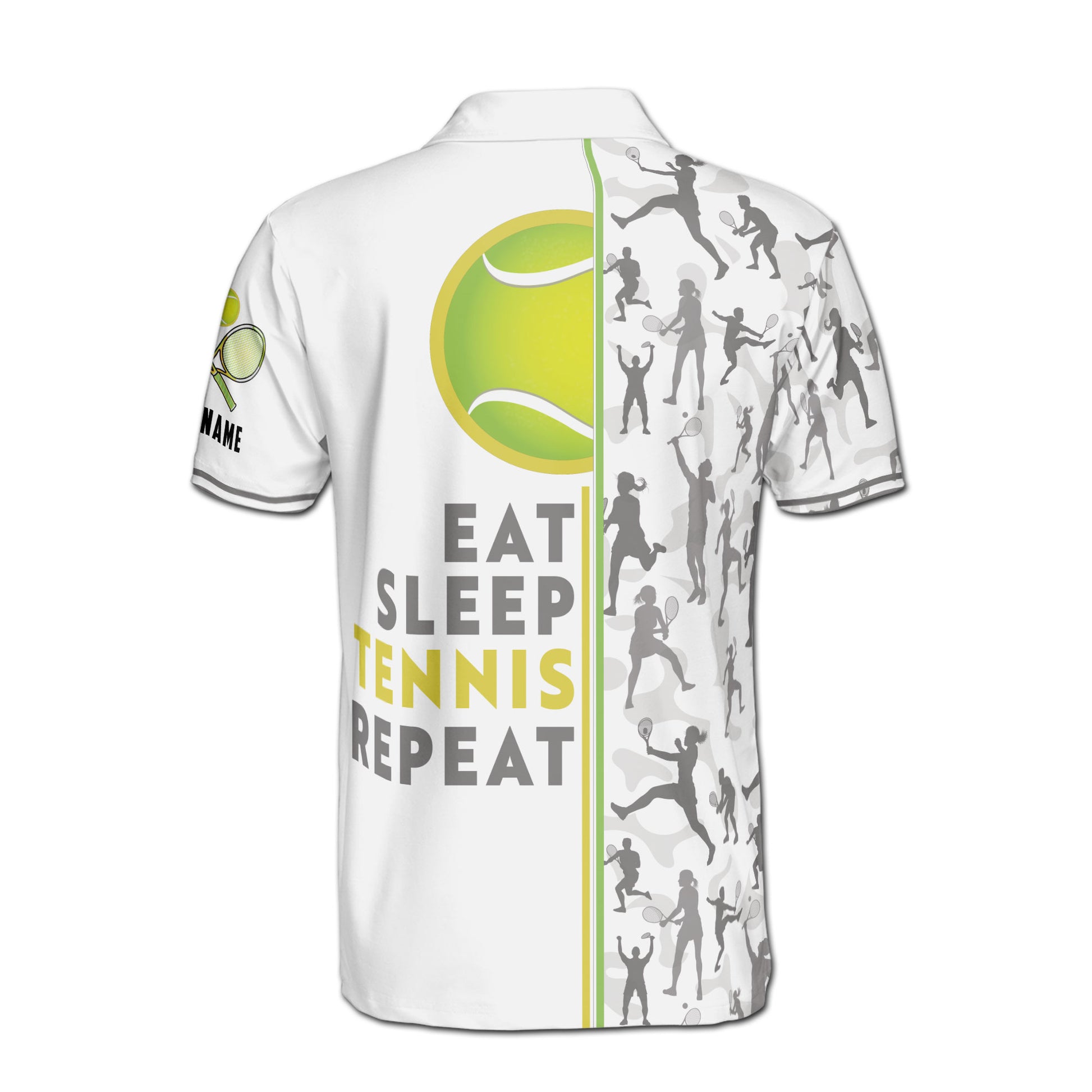 Custom Name Eat Sleep Tennis and Repeat Men's Polo S-5XL