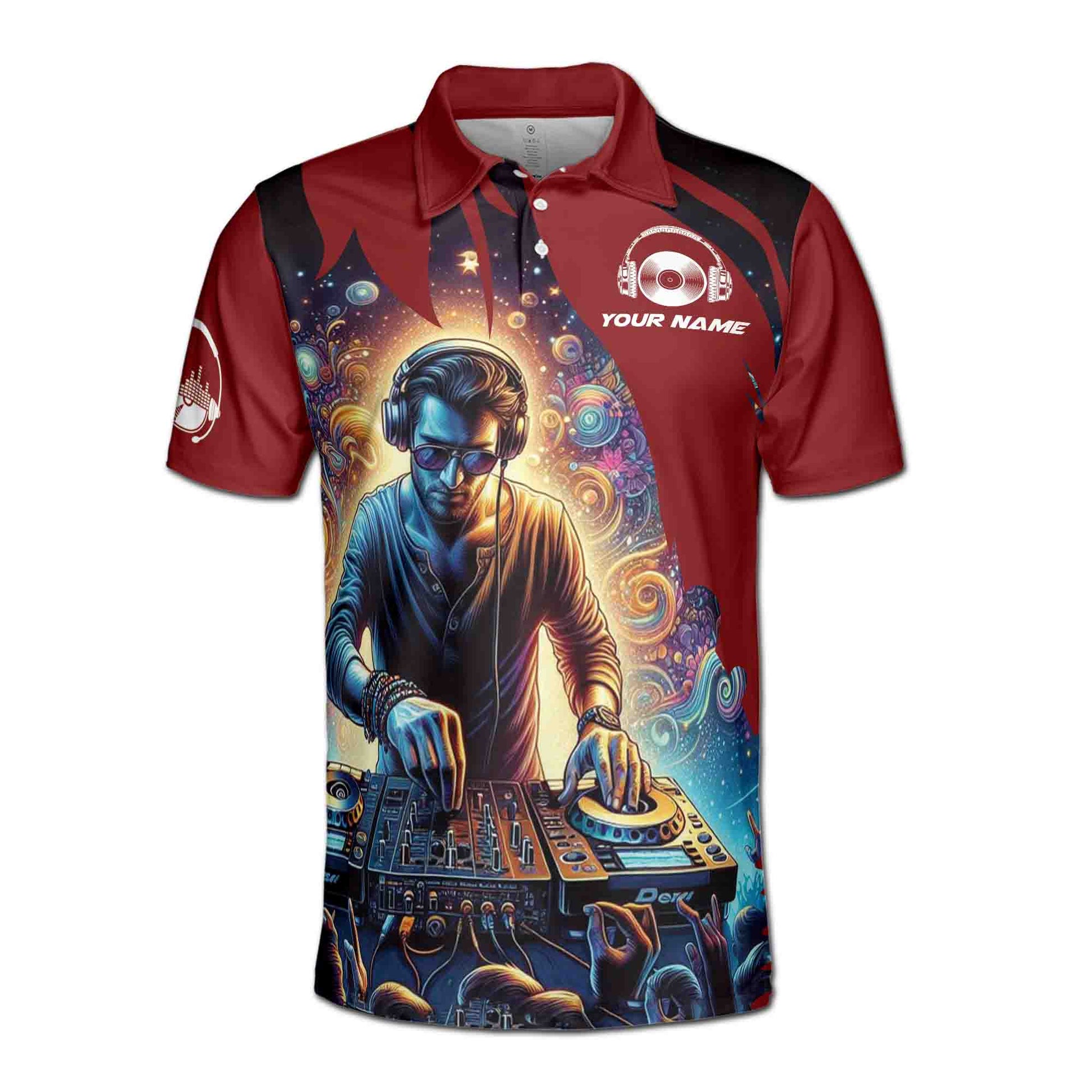 Custom Name Energetic DJ Playing The Music Men's Polo Shirt S-5XL