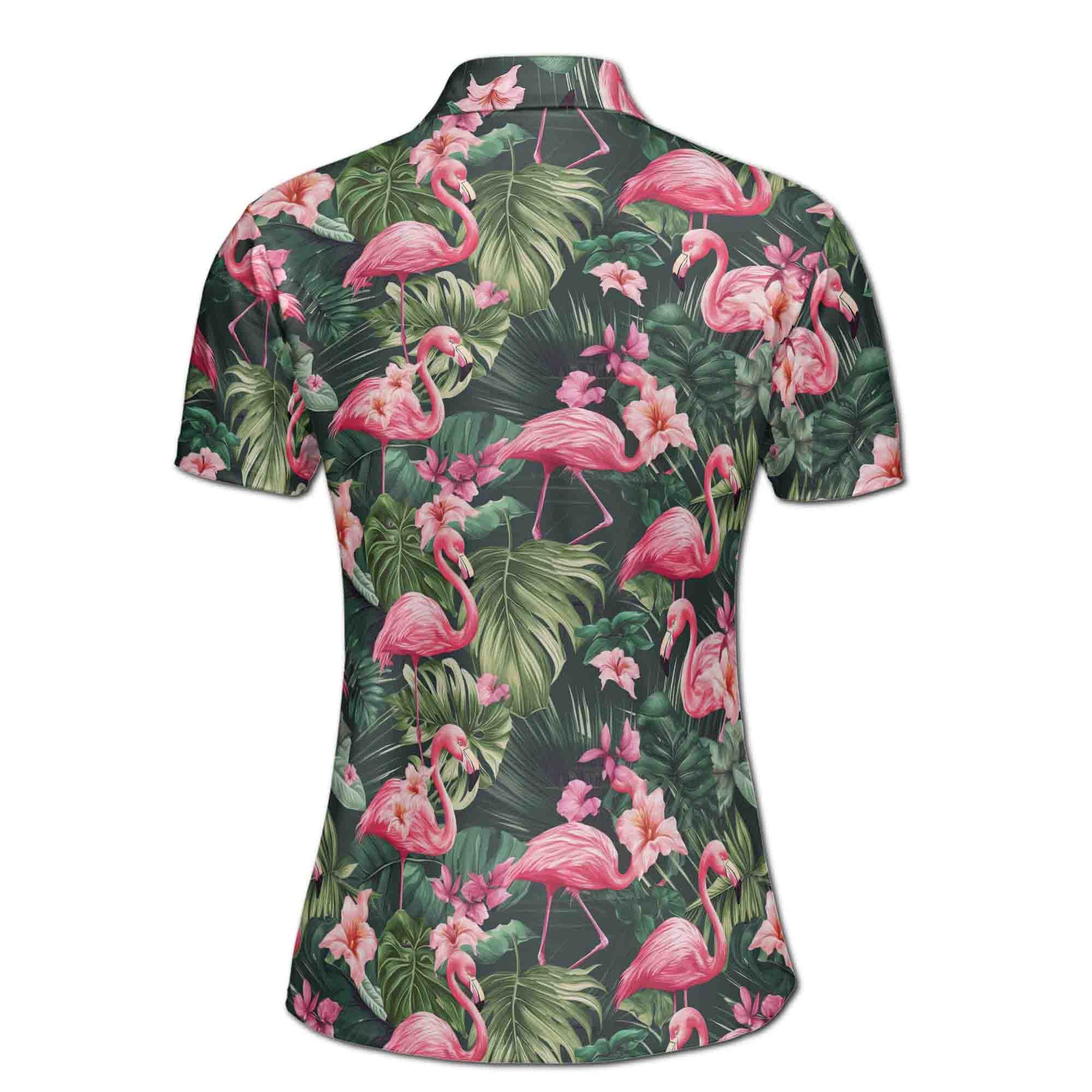 Custom Name Flamingo Palm Tree Tropical Flower Women's Polo Shirt S-5XL