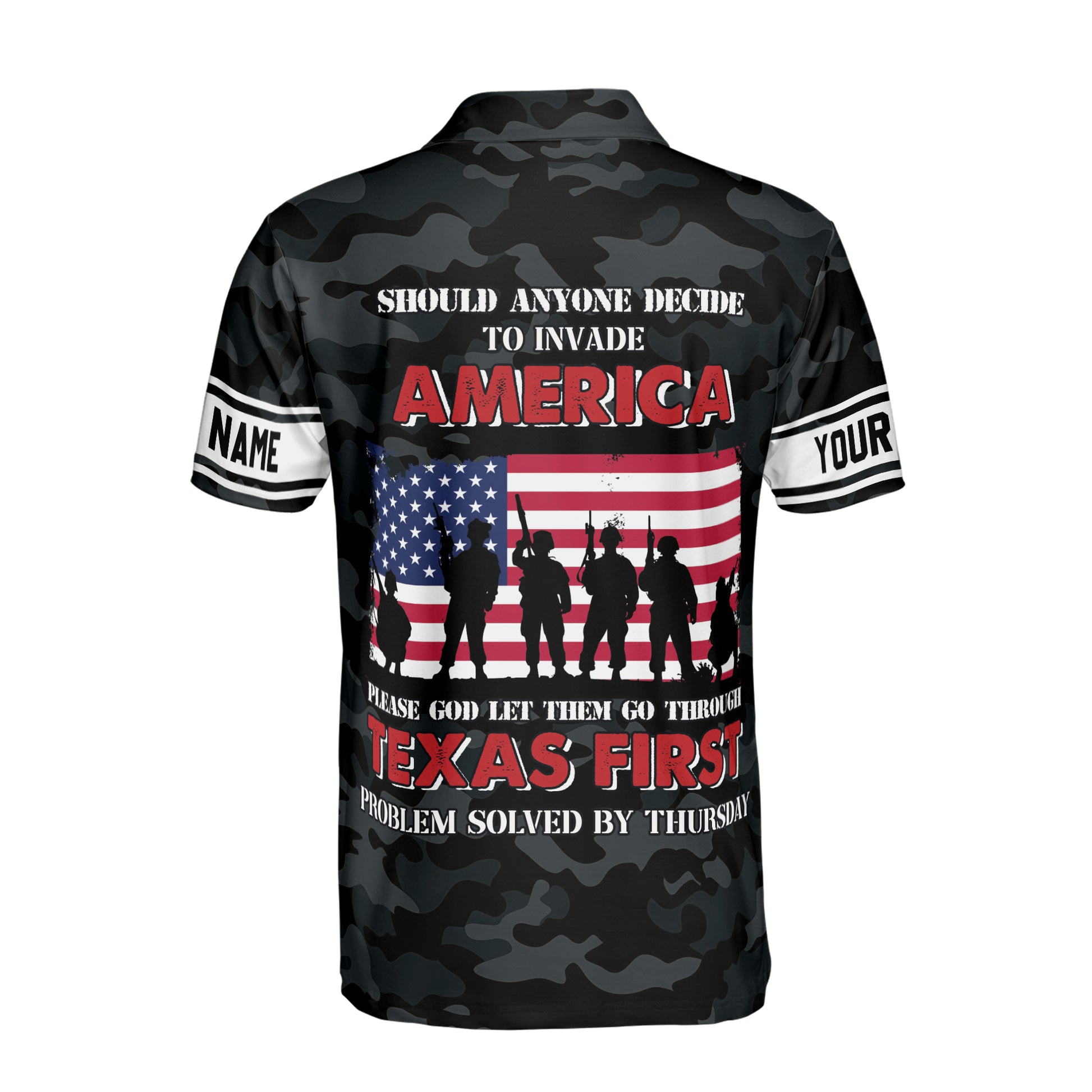 Custom Veteran American Soldier Go Through Texas First Men's Polo Shirt S-5XL