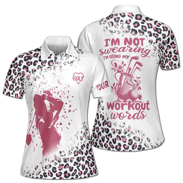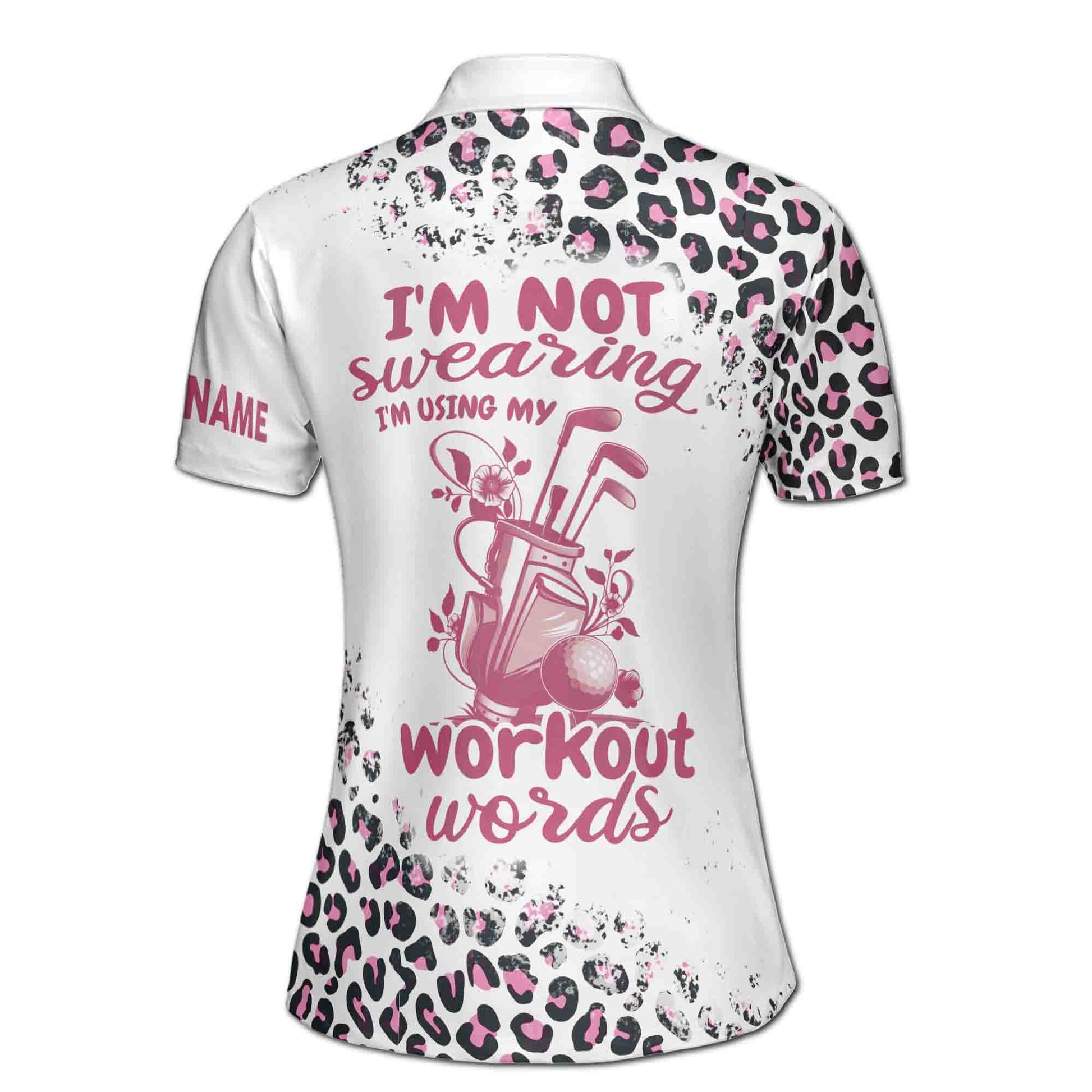 Custom Name Golf Girl Leopard I'm Using My Workout Words Women's Polo S-5XL