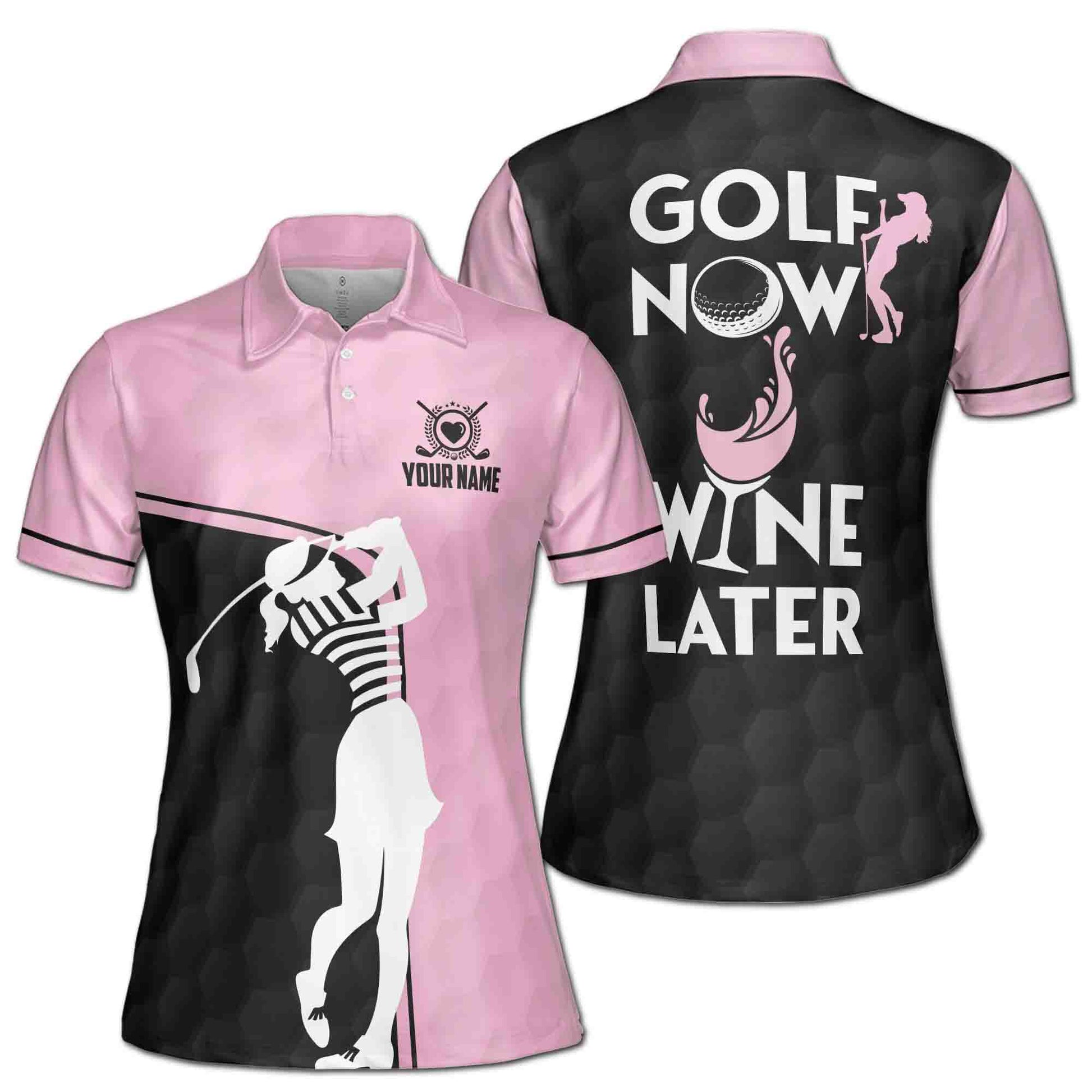 Custom Name Golf Now Wine Later Women's Polo Shirt S-5XL