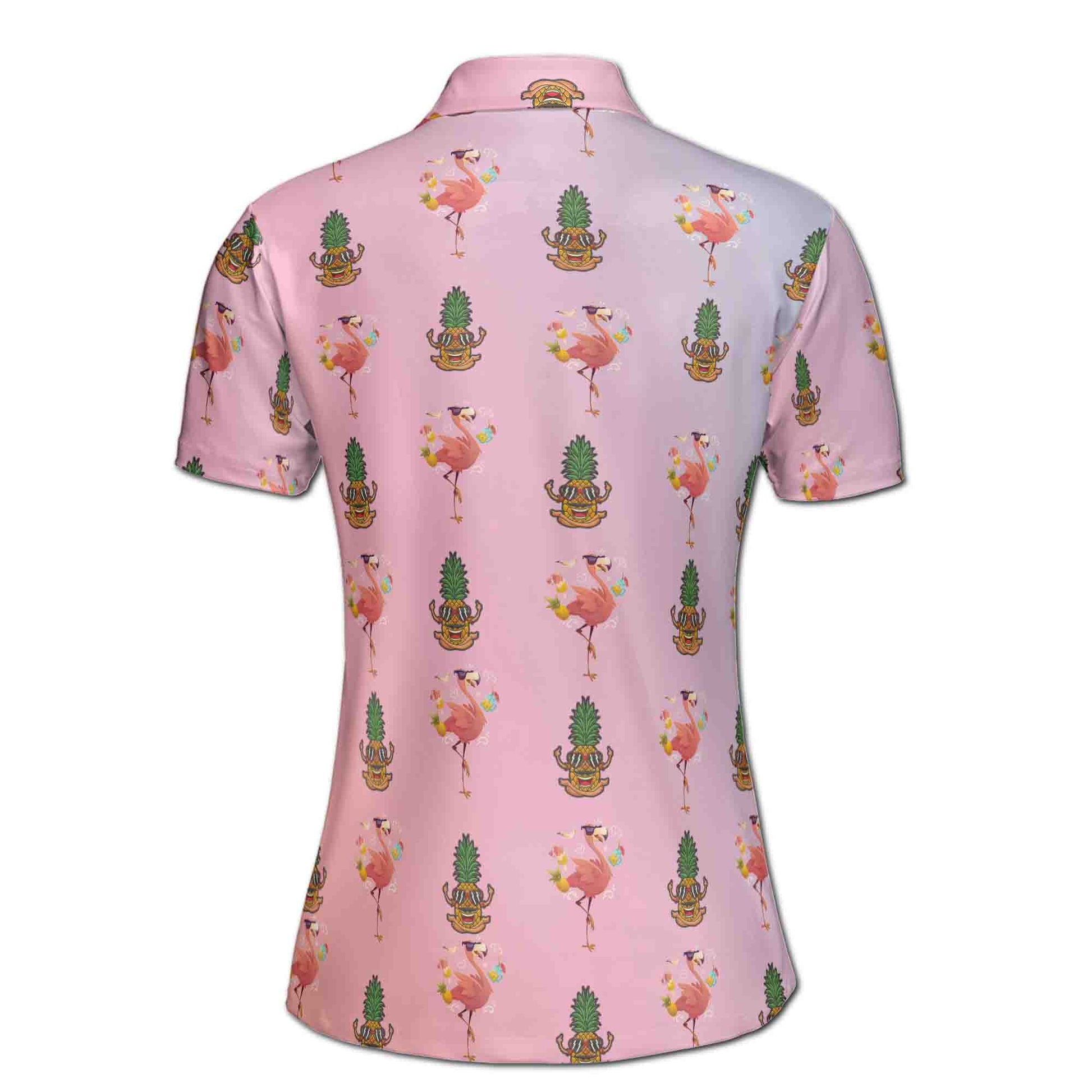 Funny Gradient Summer Flamingo And Pineapple Women's Polo Shirt S-5XL