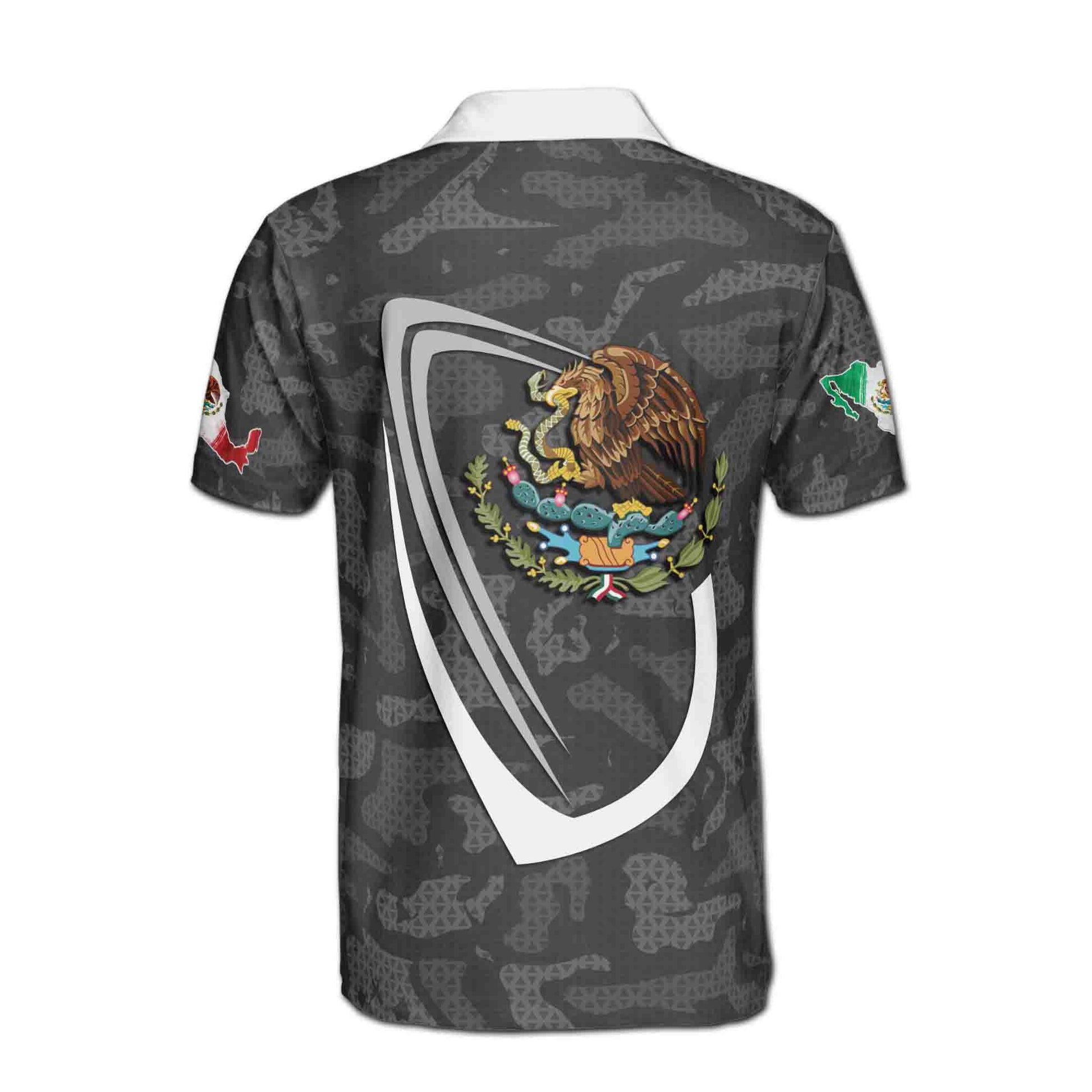 Custom Name Gray Mexico Coat Of Arms Eagle Mexico National Pride Men's Polo Shirt S-5XL