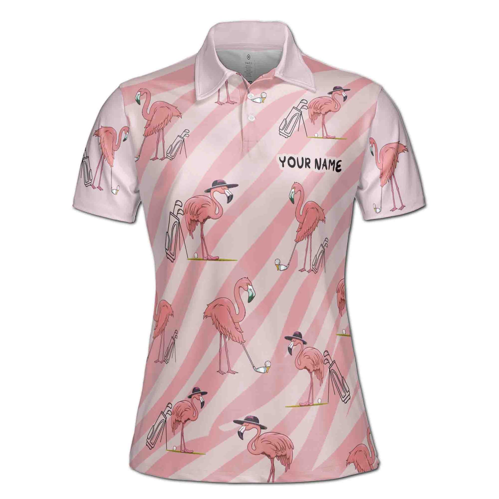 Custom Name Pink Golf Polo with Flamingo Women's Polo S-5XL