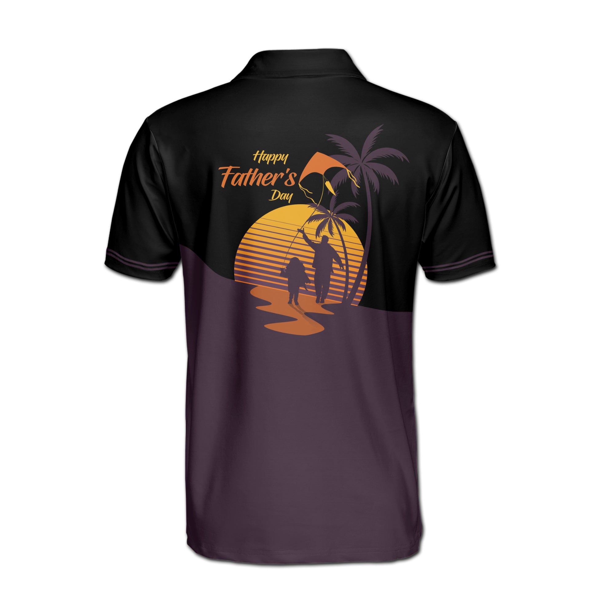 Custom Name Father and Son in The Beach Dark Purple Men's Polo Shirt S-5XL