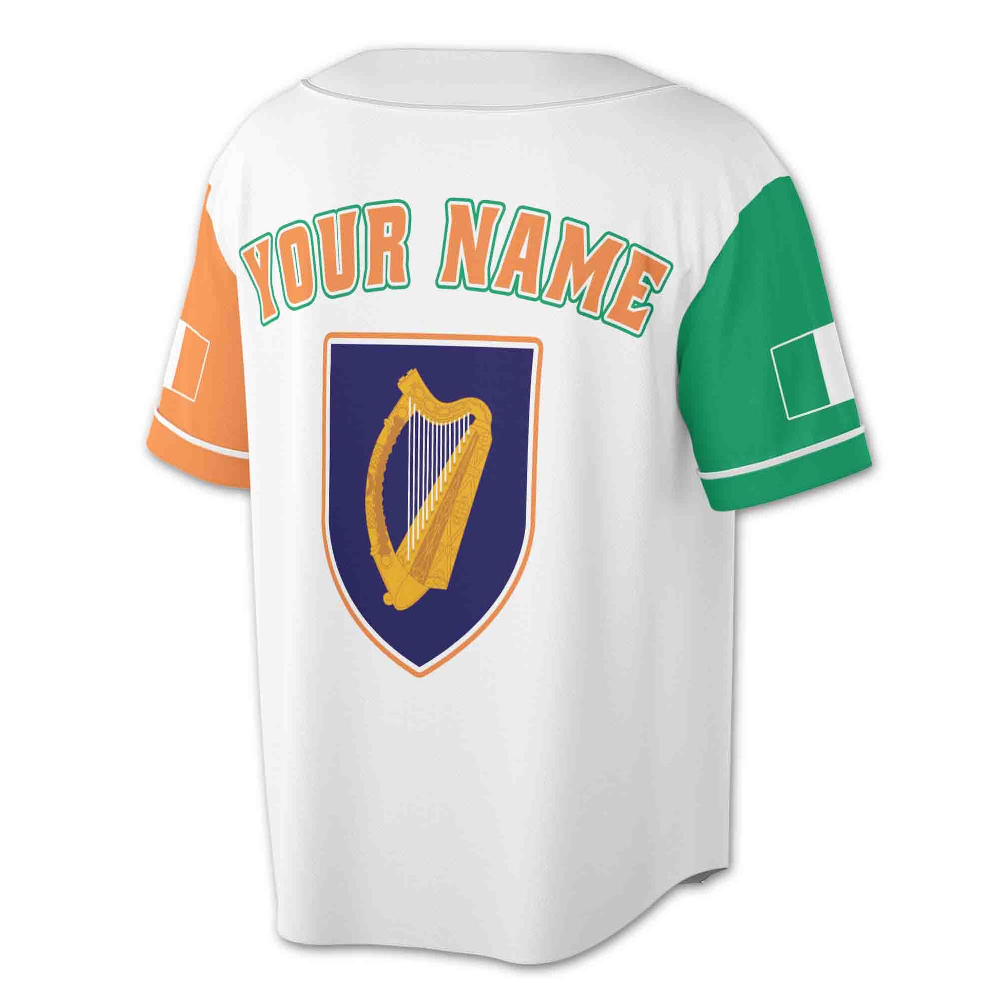 Custom Name Ireland Flag Irish Coat Of Arms Baseball Jersey S-5XL