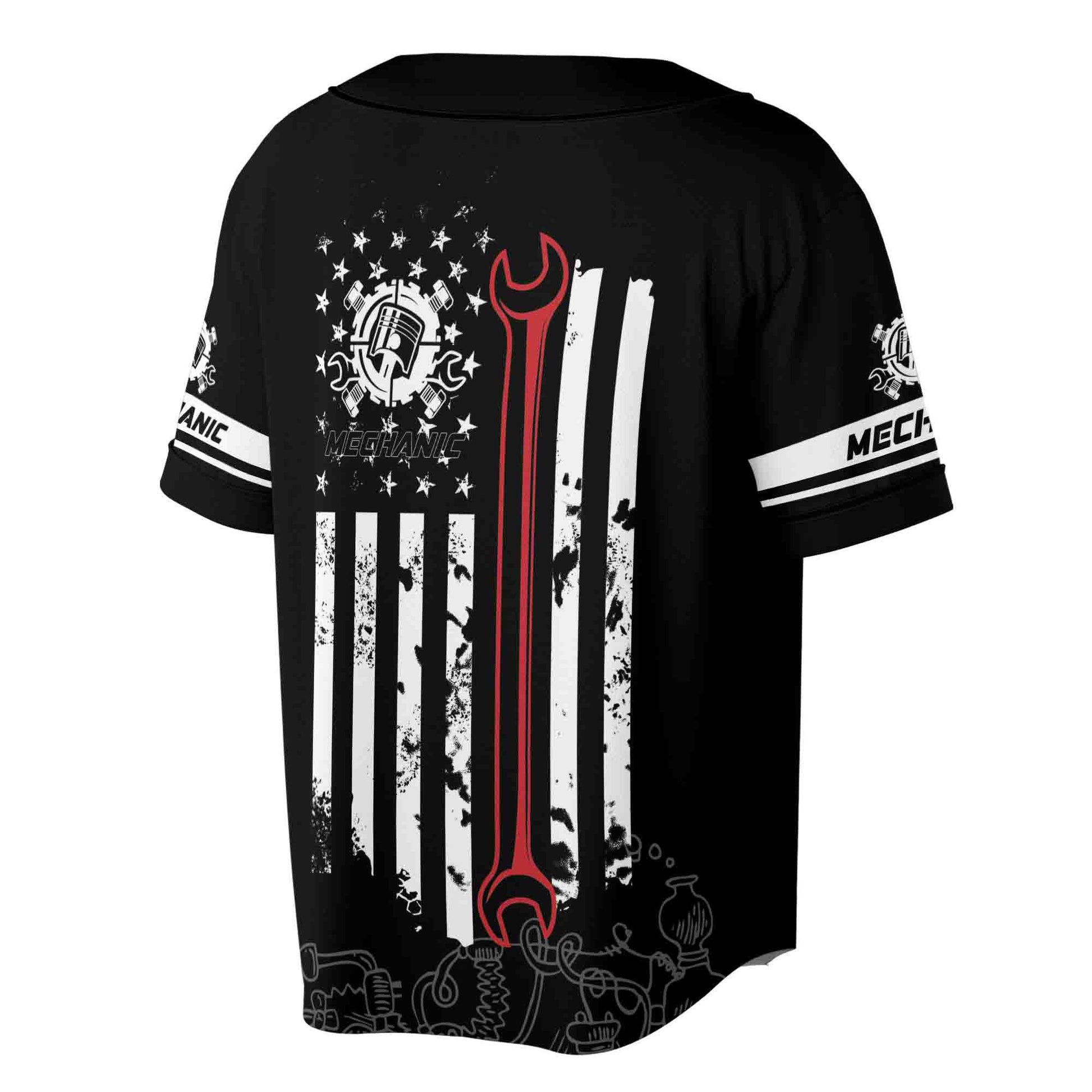 Custom Name Mechanic American Flag Patriotic Mechanic Tool Baseball Jersey S-5XL