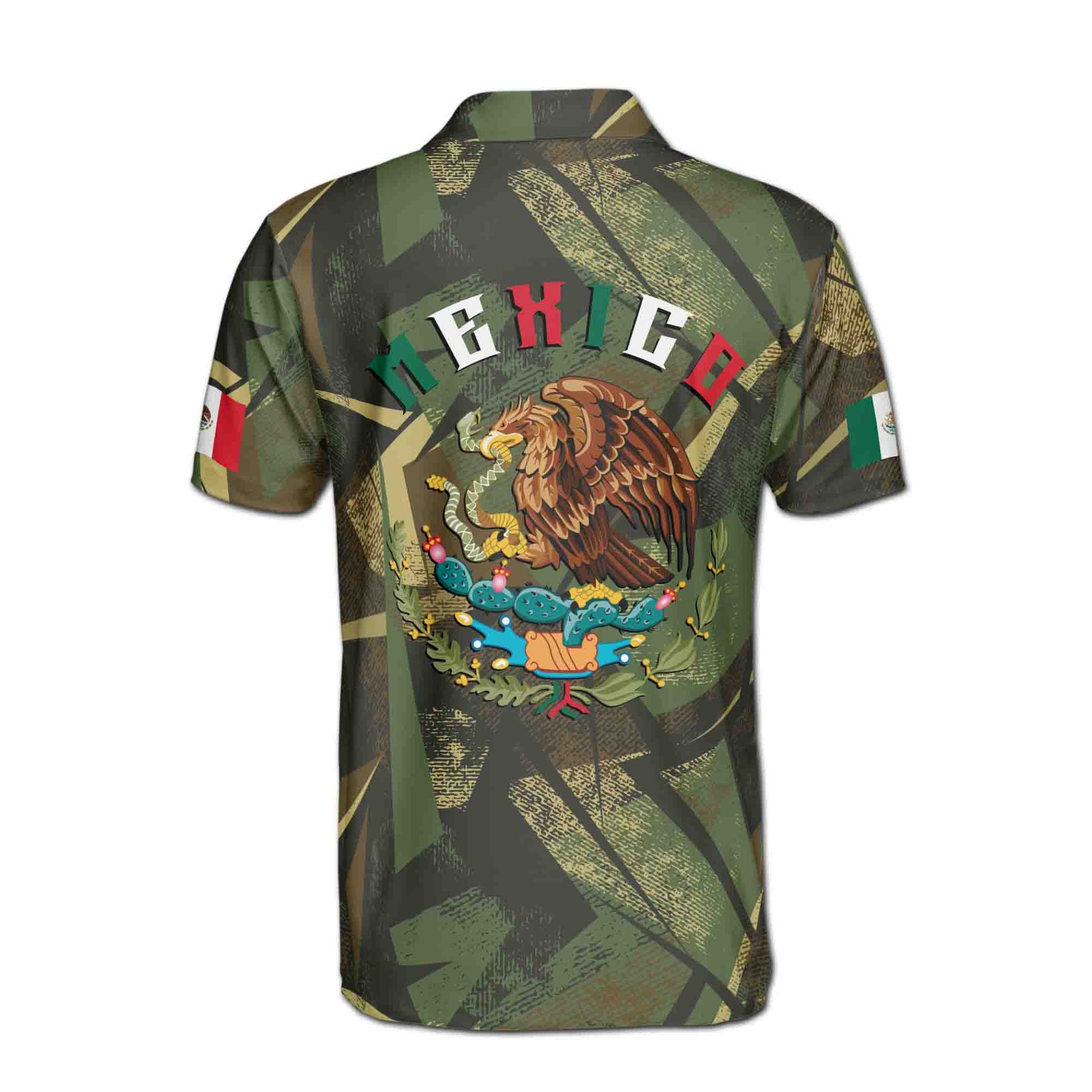 Custom Name Mexico Coat of Arms Camouflage Pattern National Pride Men's Polo Shirt S-5XL