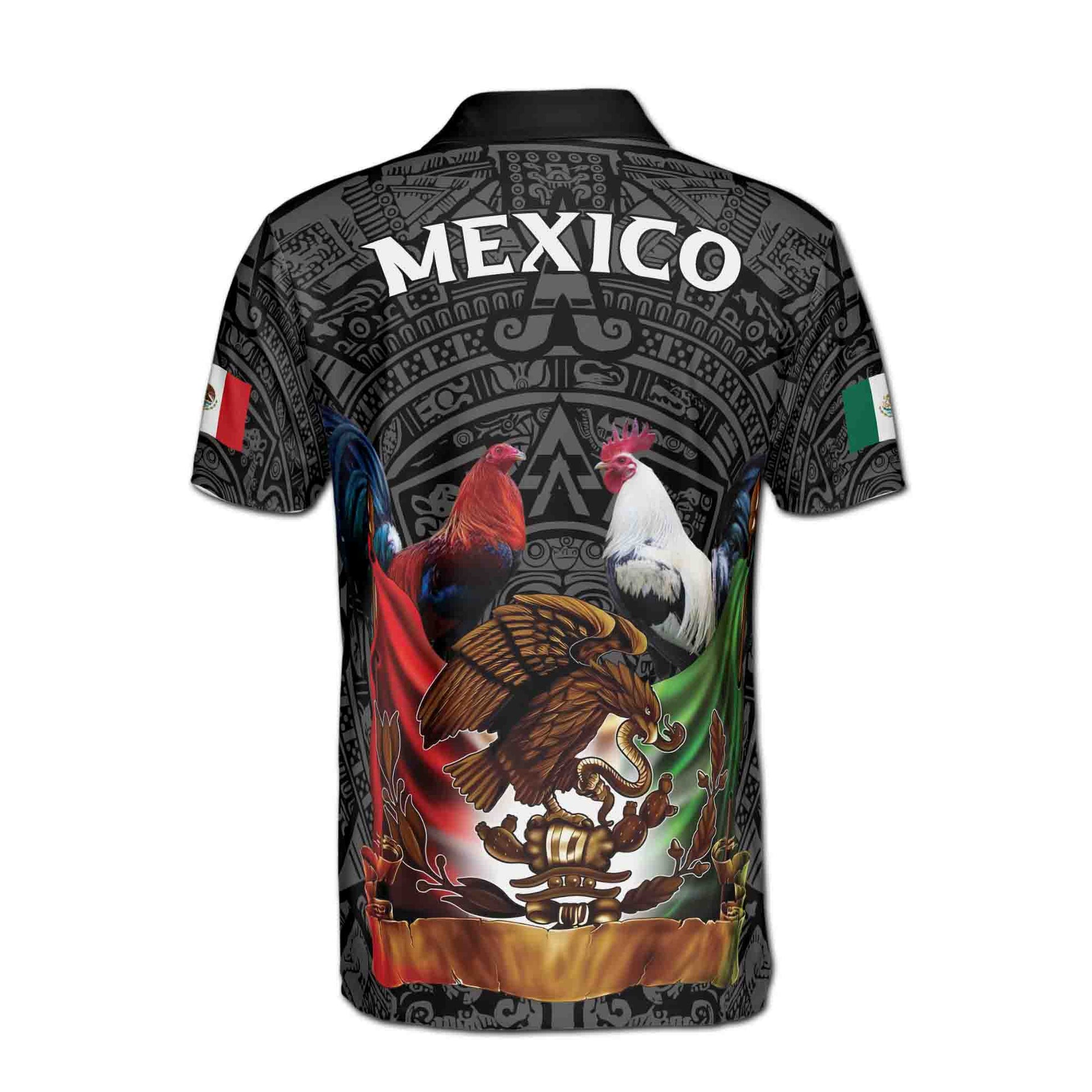 Custom Name Mexico Tattoo Tribal Mexico Coat of Arms National Pride Men's Polo Shirt S-5XL