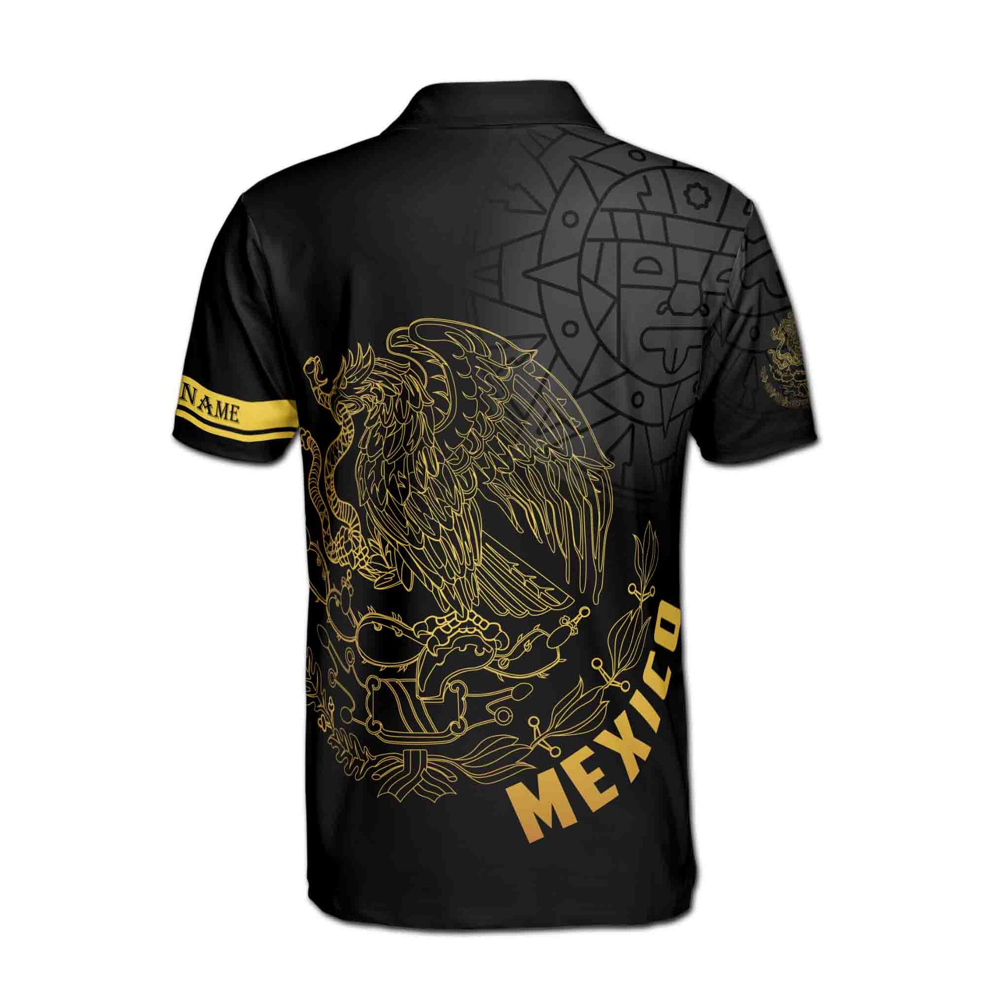 Custom Name Mexico Tribal Aztec Eagle Coat of Arms National Pride Men's Polo shirt S-5XL