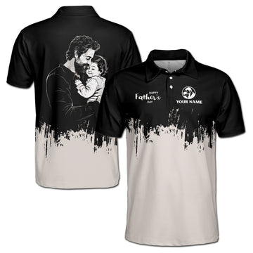 Custom Name Father and Daughter Art Love You Dad Men's Polo Shirt S-5XL