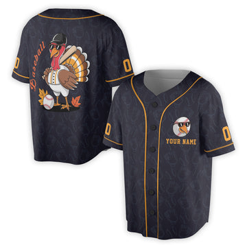 Custom Name Number Baseball Turkey Autumn Baseball Jersey S-5XL