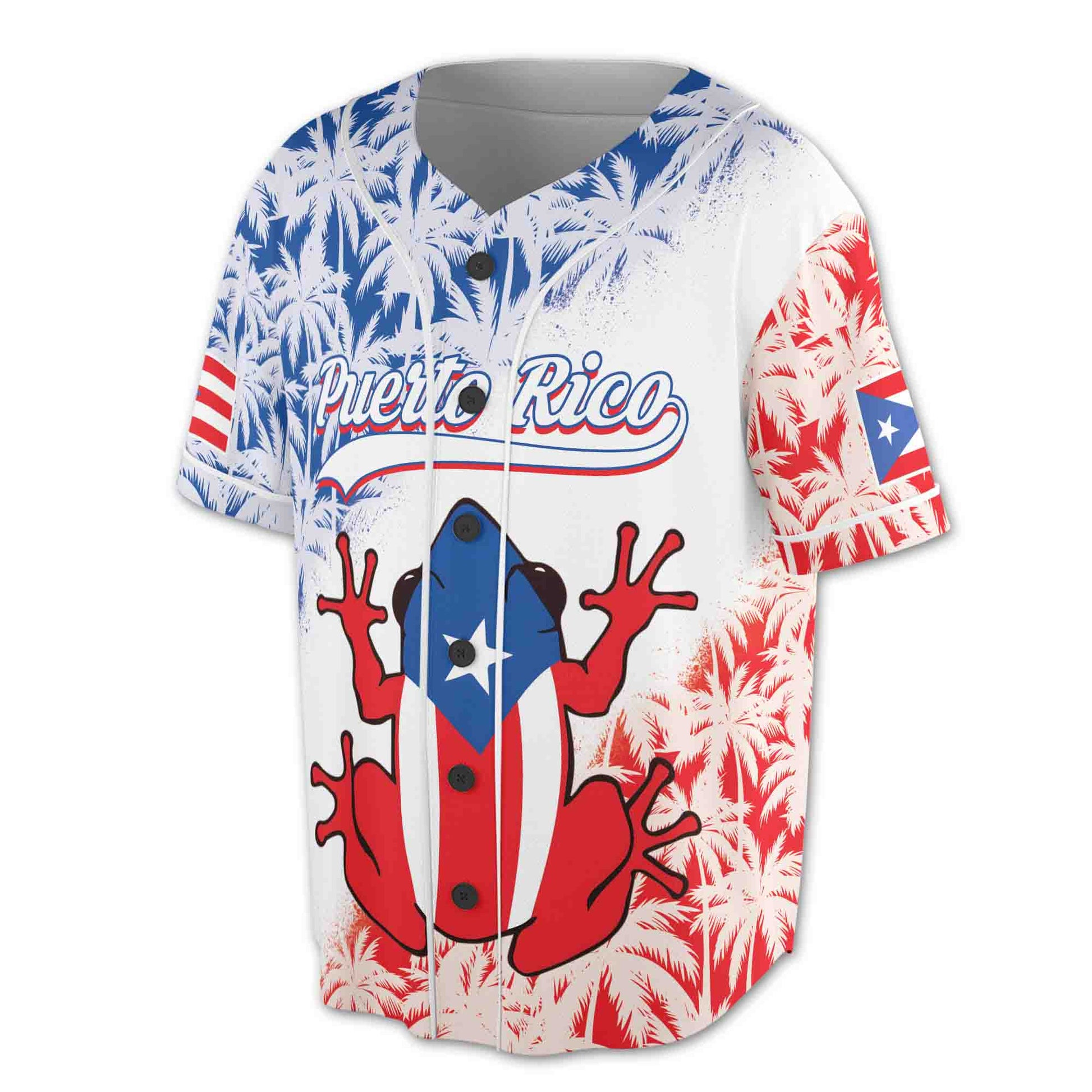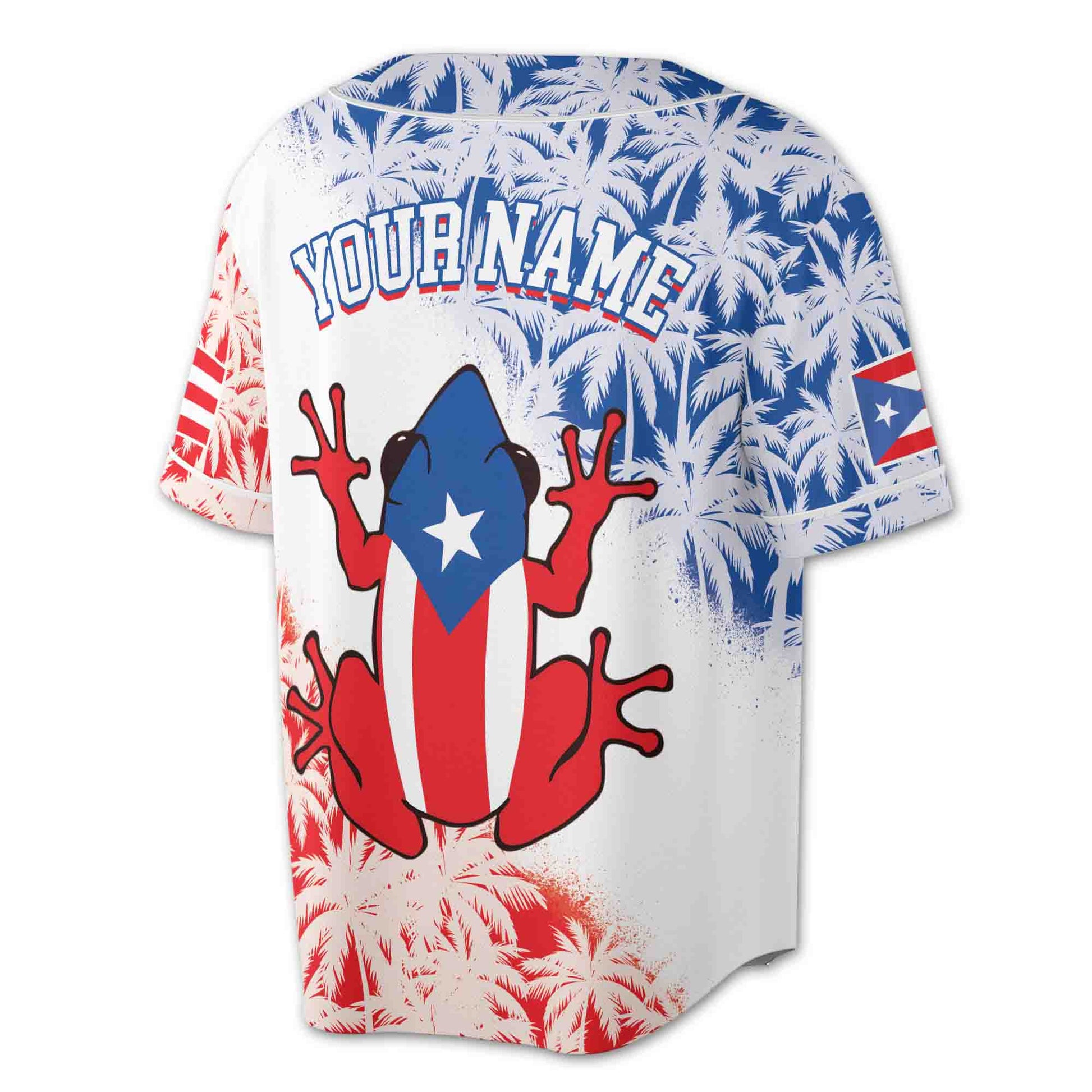 Custom Name Patriotic Puerto Rico Flag Frog Vinyl Proud Baseball Jersey S-5XL
