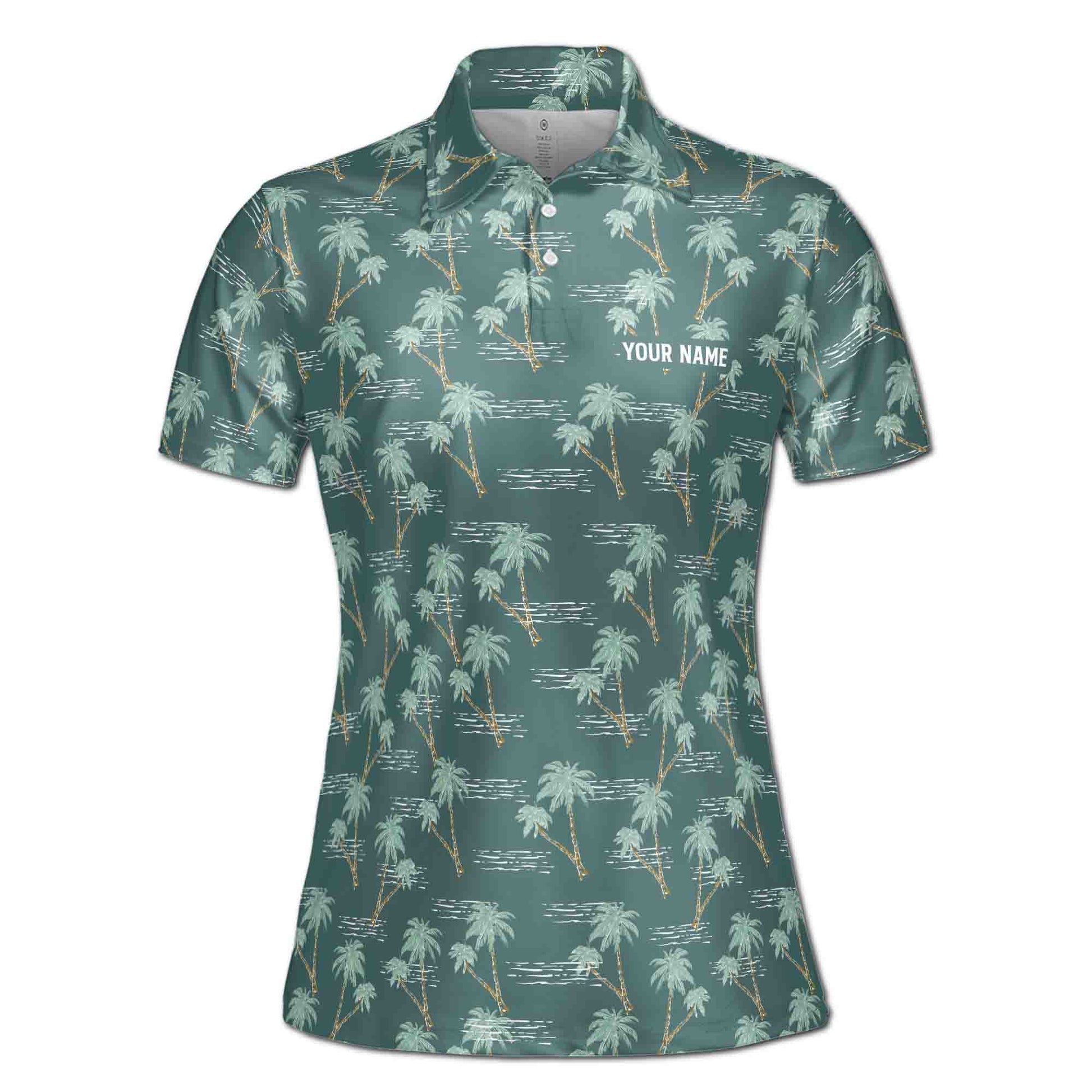 Custom Name Ocean Palm Tree Golf Women's Polo Shirt S-5XL