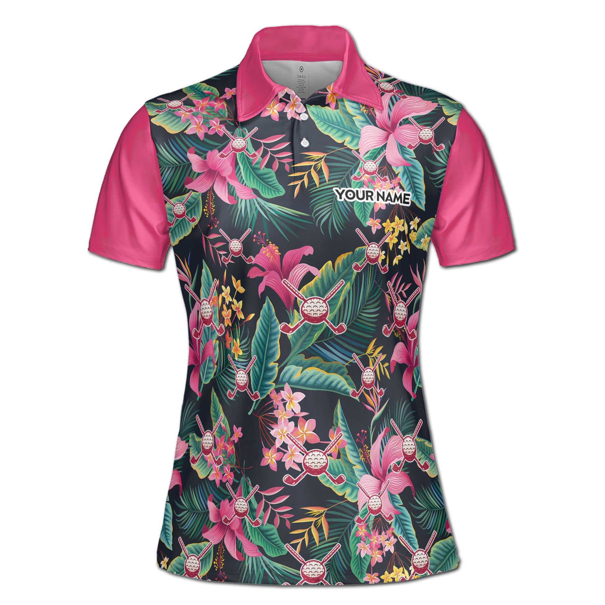 Custom Name Pink Floral Golfer Women's Polo Shirt S-5XL