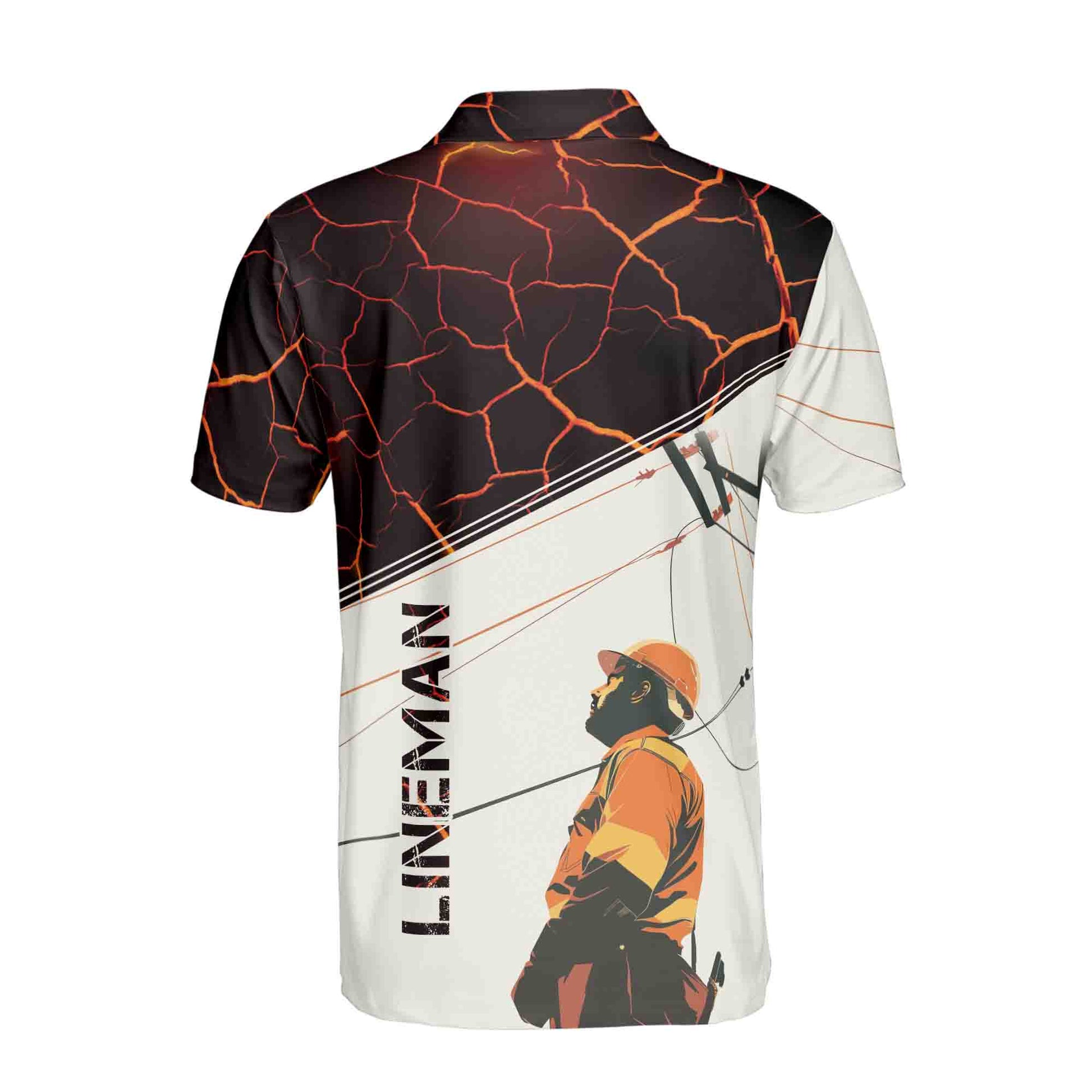 Custom Name Proud To Be A Lineman Lava Pattern Men's Polo Shirt S-5XL