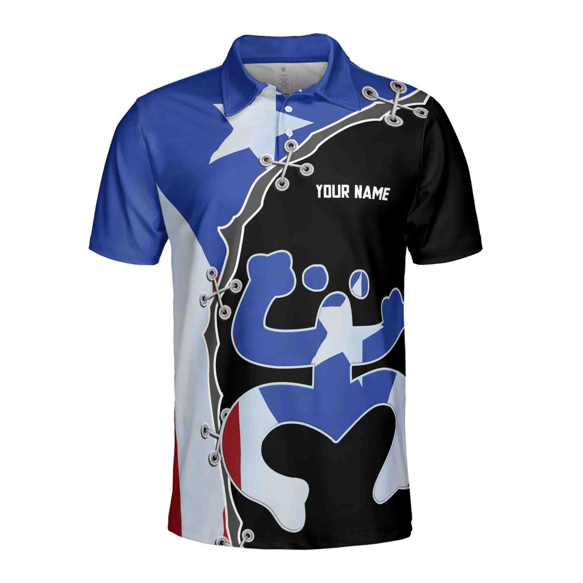 Custom Name Puerto Rico Puerto Rican Retro Frog Pattern Men's Polo Shirt S-5XL