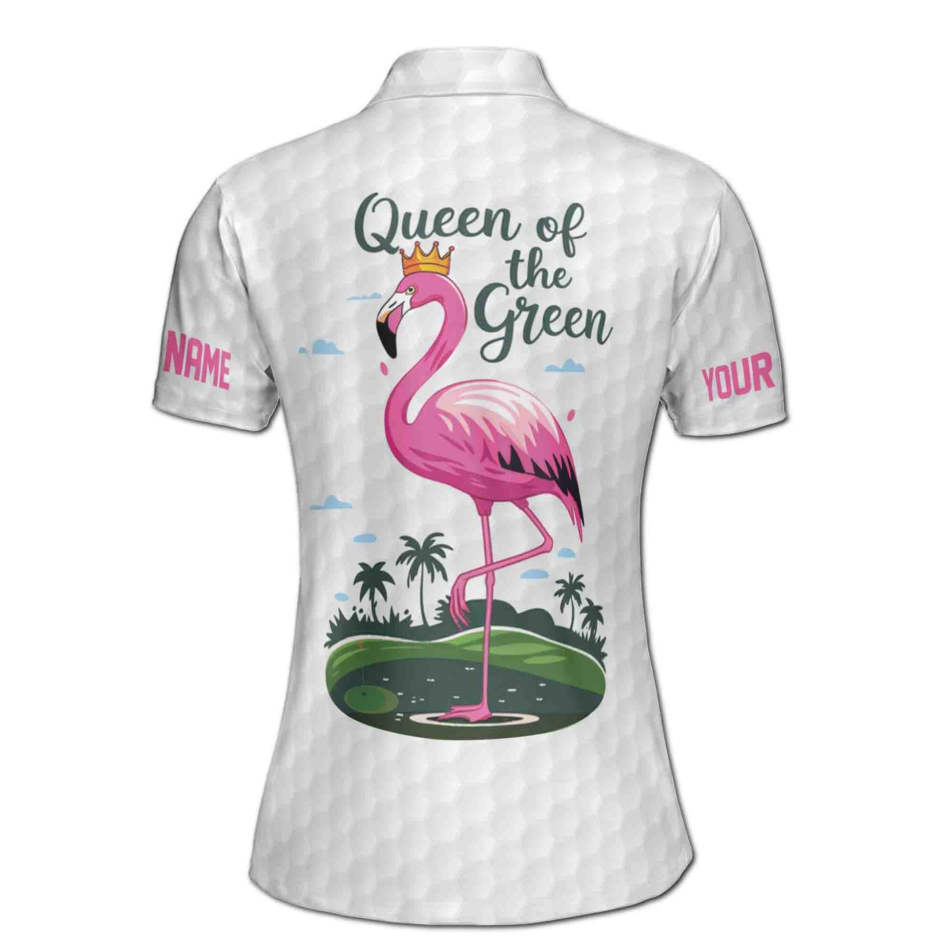 Custom Name Golf Queen of the Green Flamingo Women's Polo S-5XL