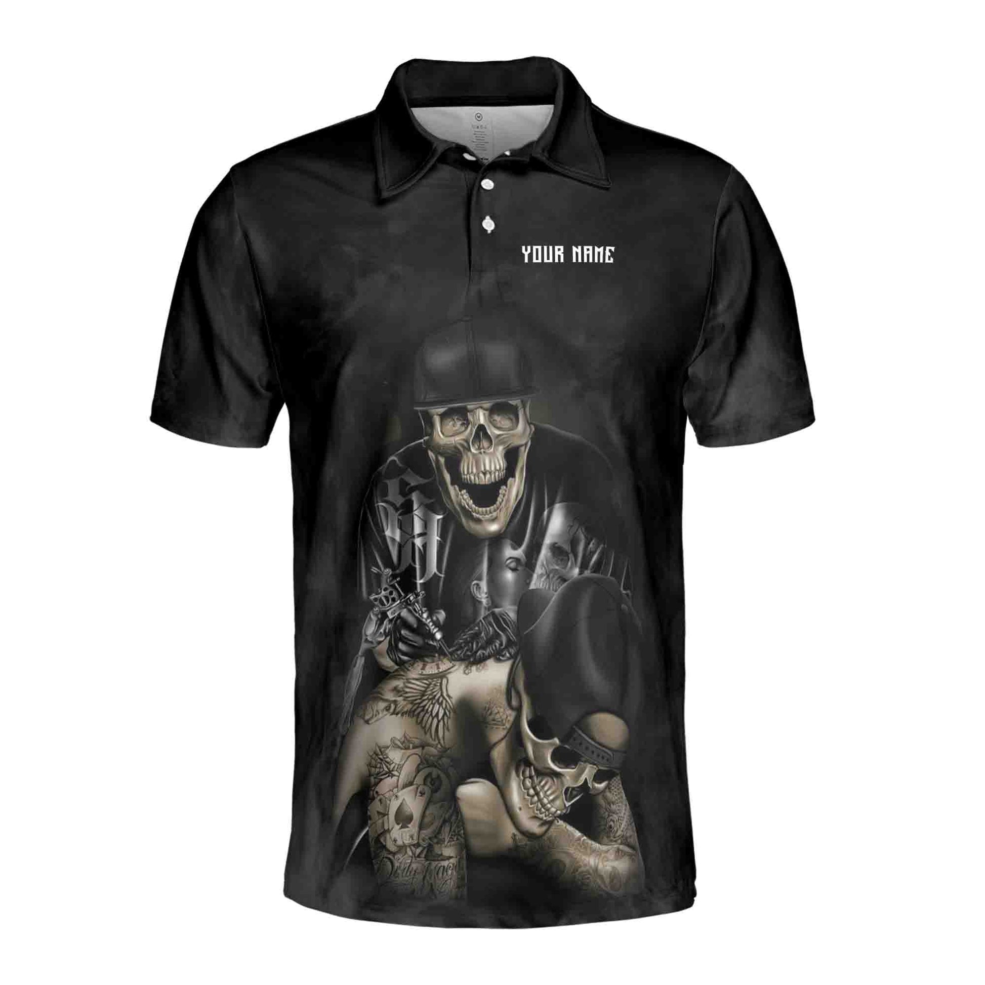 Custom Name Skeleton Tattoo Artist Tattoo Last Forever Men's Polo Shirt S-5XL