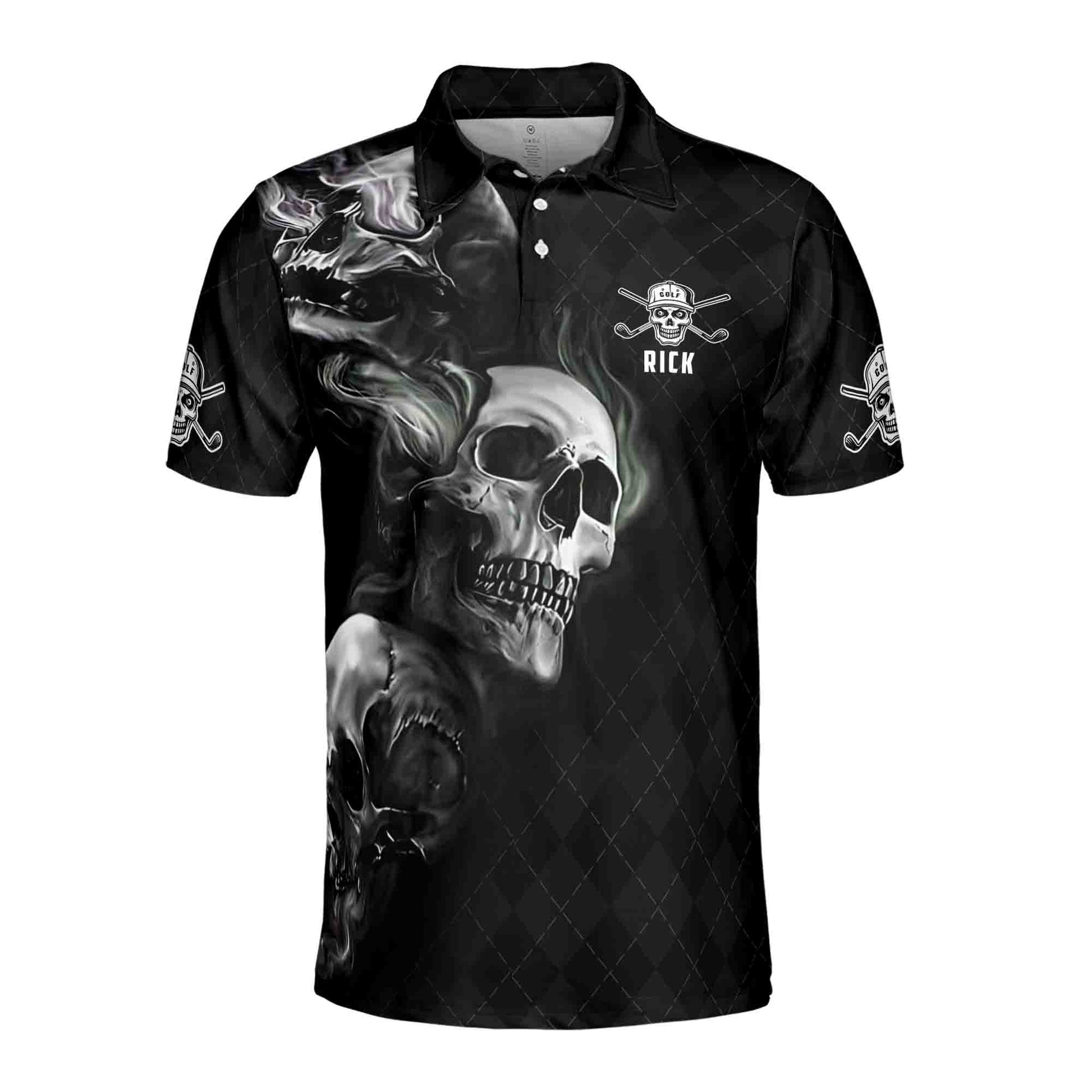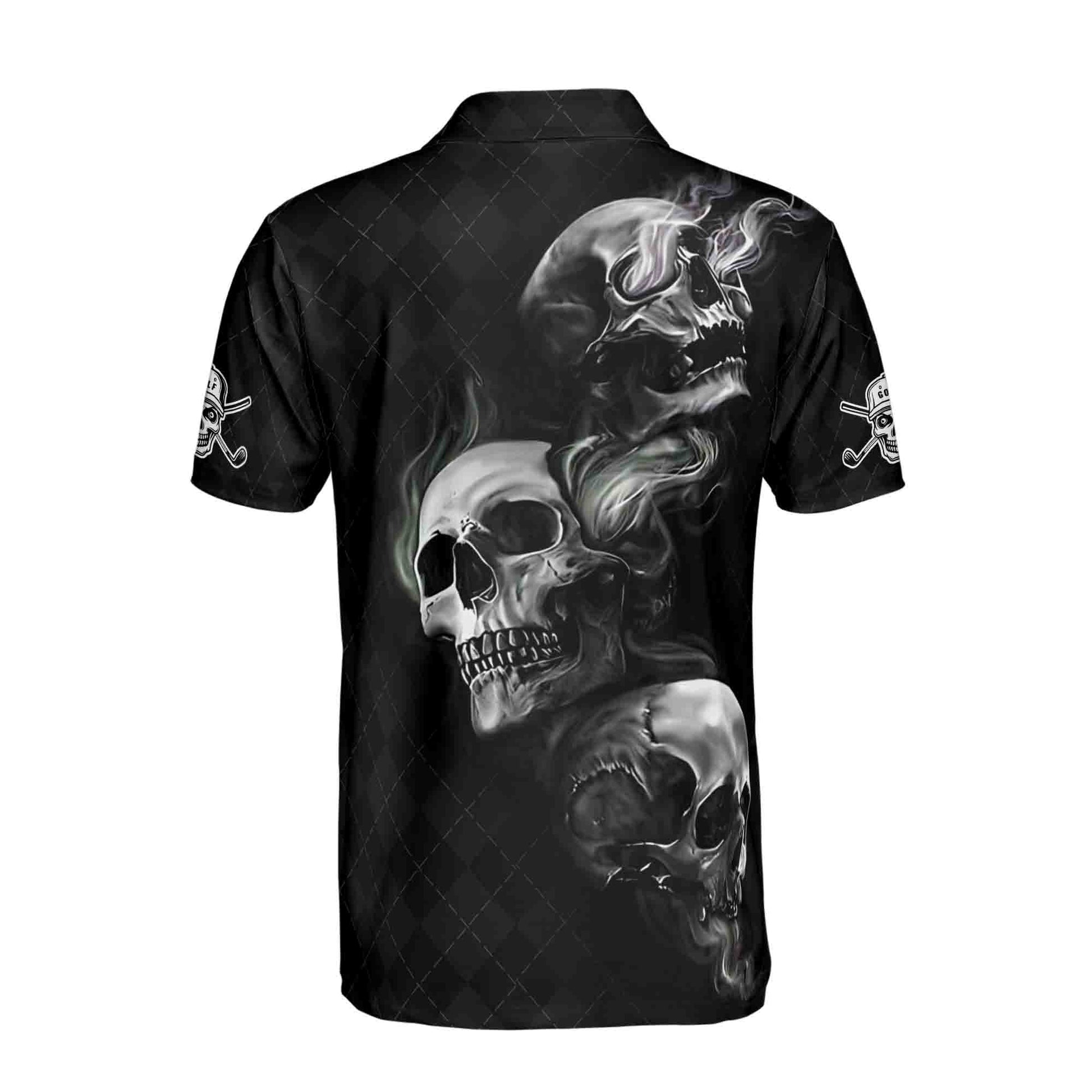 Custom Name Smoke Skull Dark Checked Golf Men's Polo Shirt S-5XL