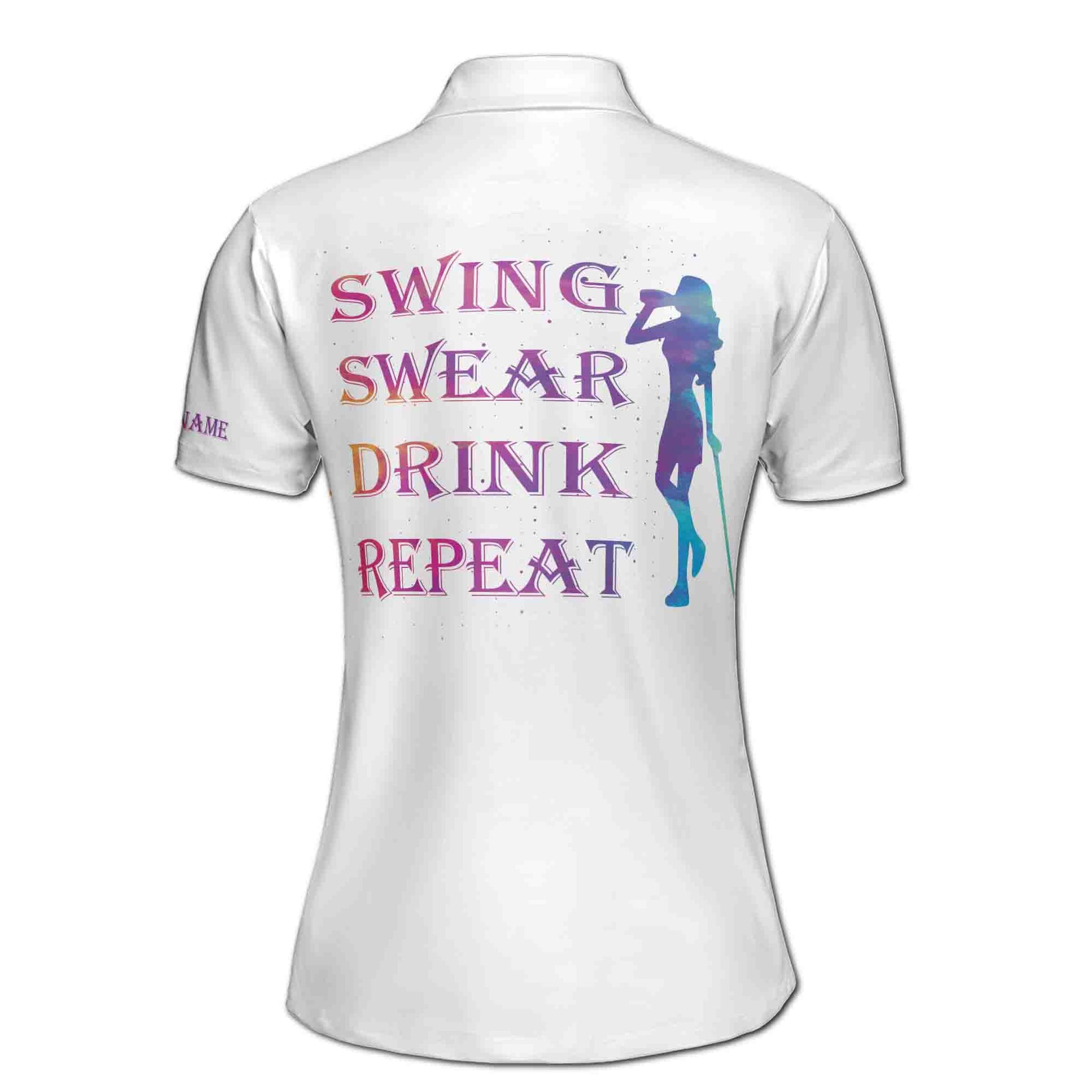Custom Name Swing Swear Drink Repeat Golf Women's Polo Shirt S-5XL