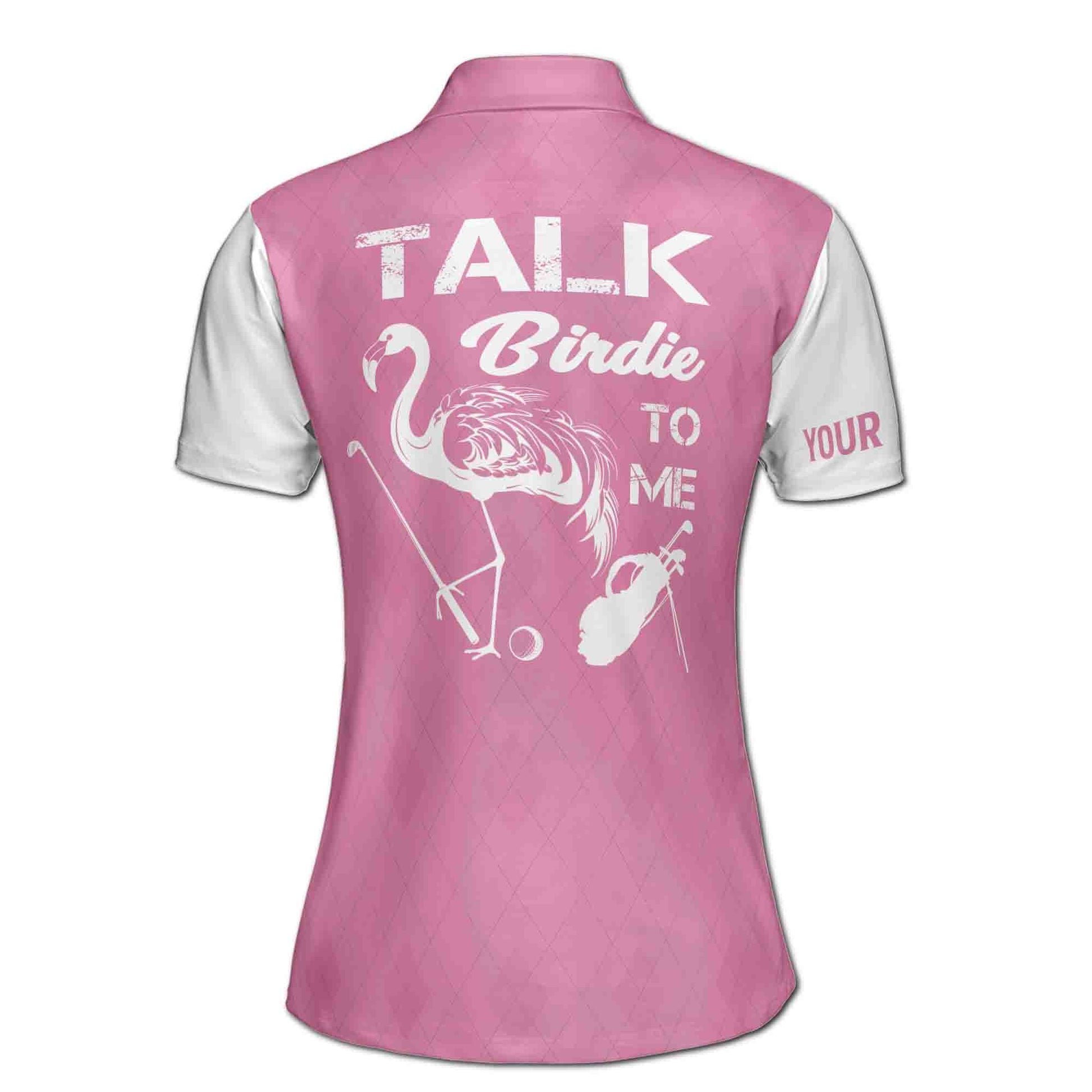 Custom Name Talk Birdie To Me Pink Argyle Women's Polo Shirt S-5XL