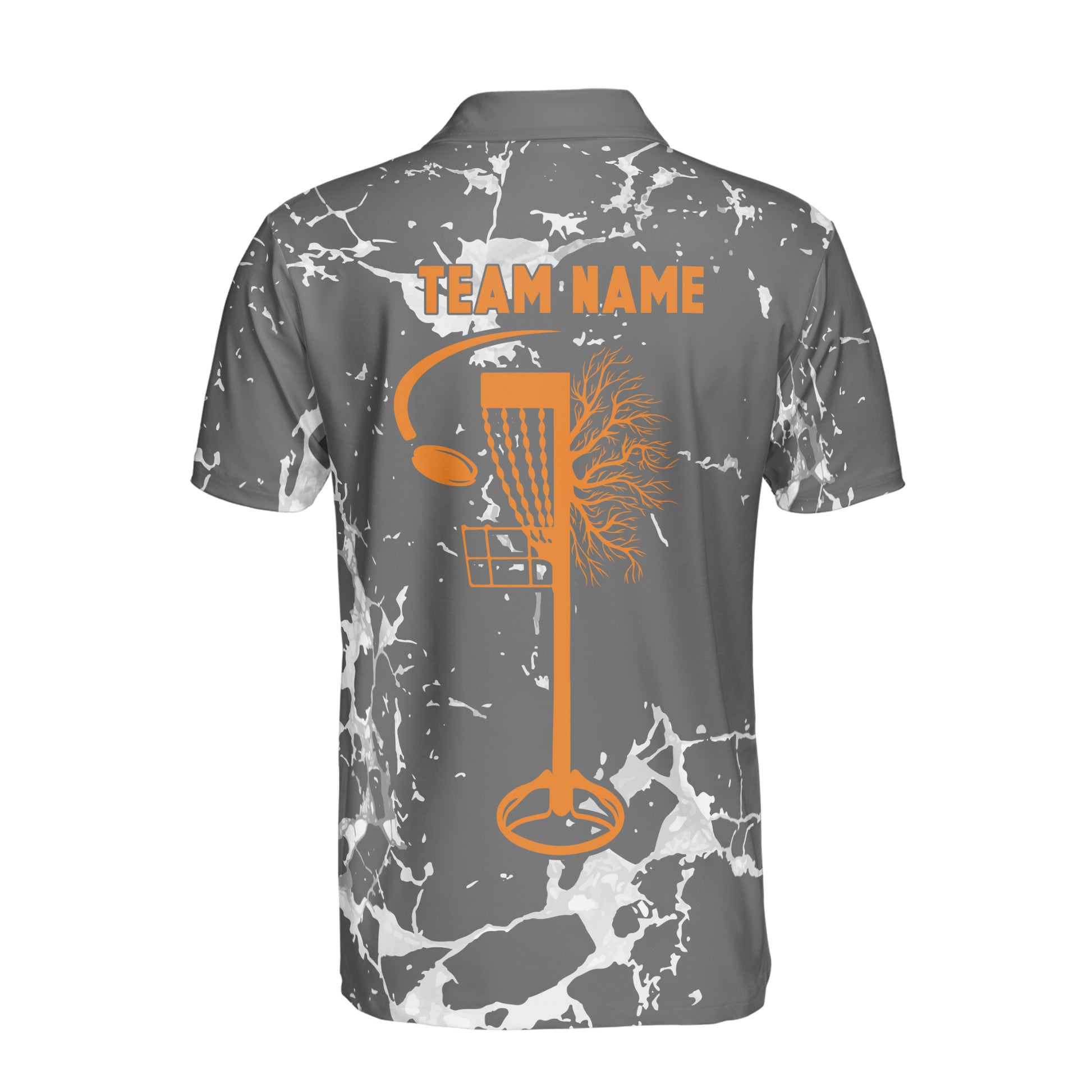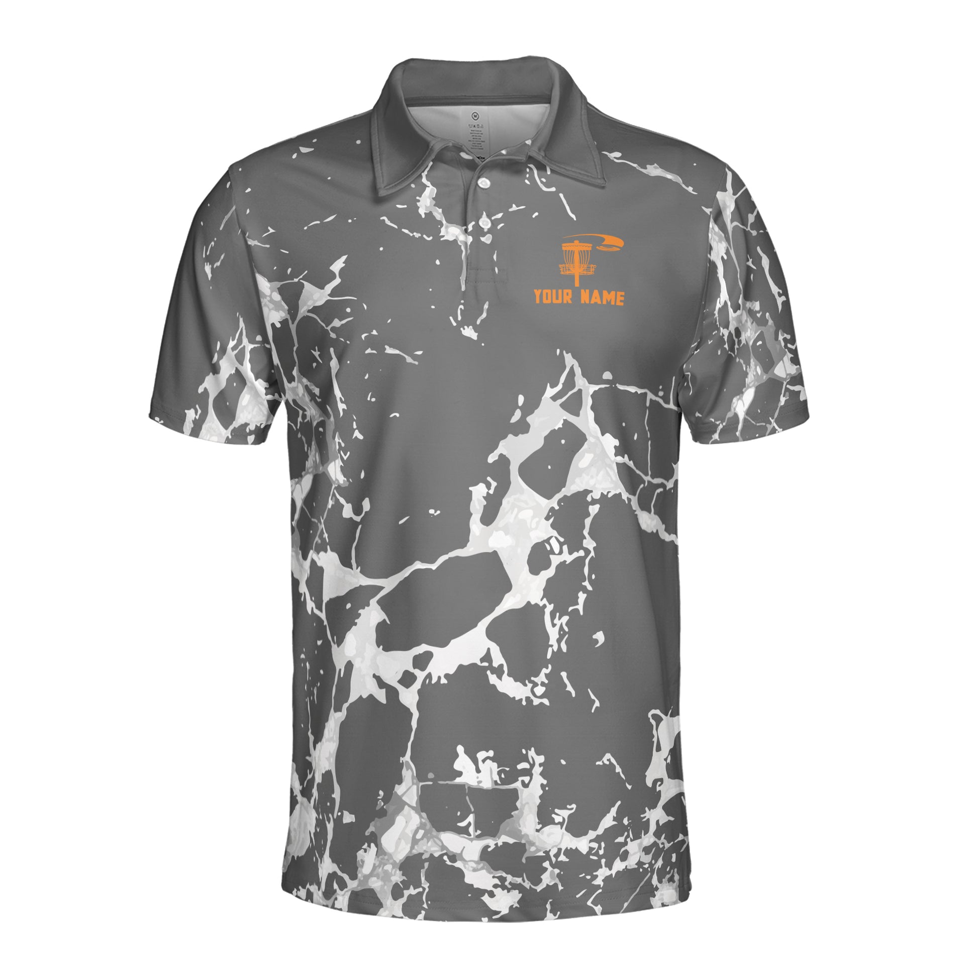 Custom Name Team Disc Golf Gray Marble Pattern Deep Men's Polo Shirt S-5XL