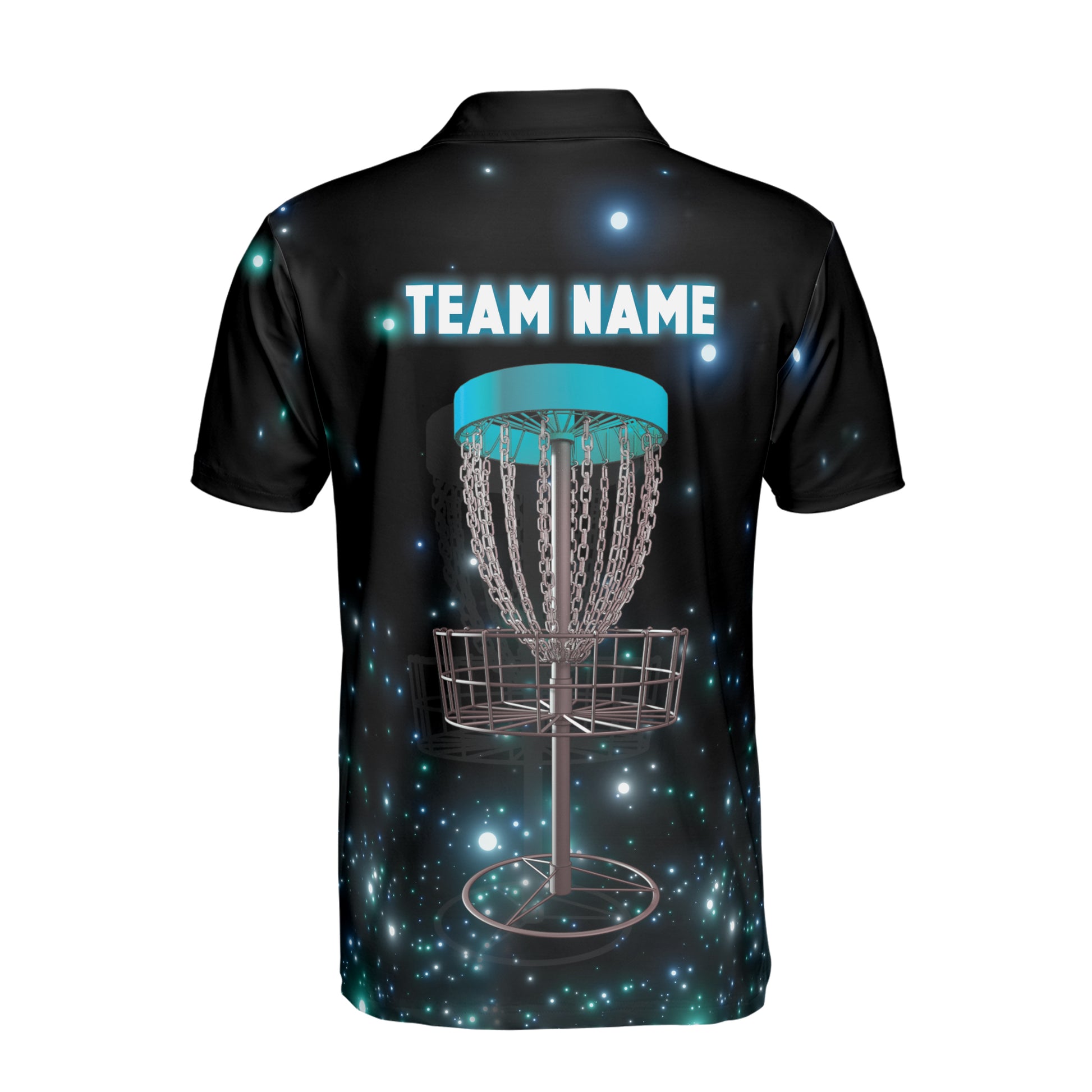 Custom Name Team Disc Golf Black Galaxy Men's Polo Shirt S-5XL