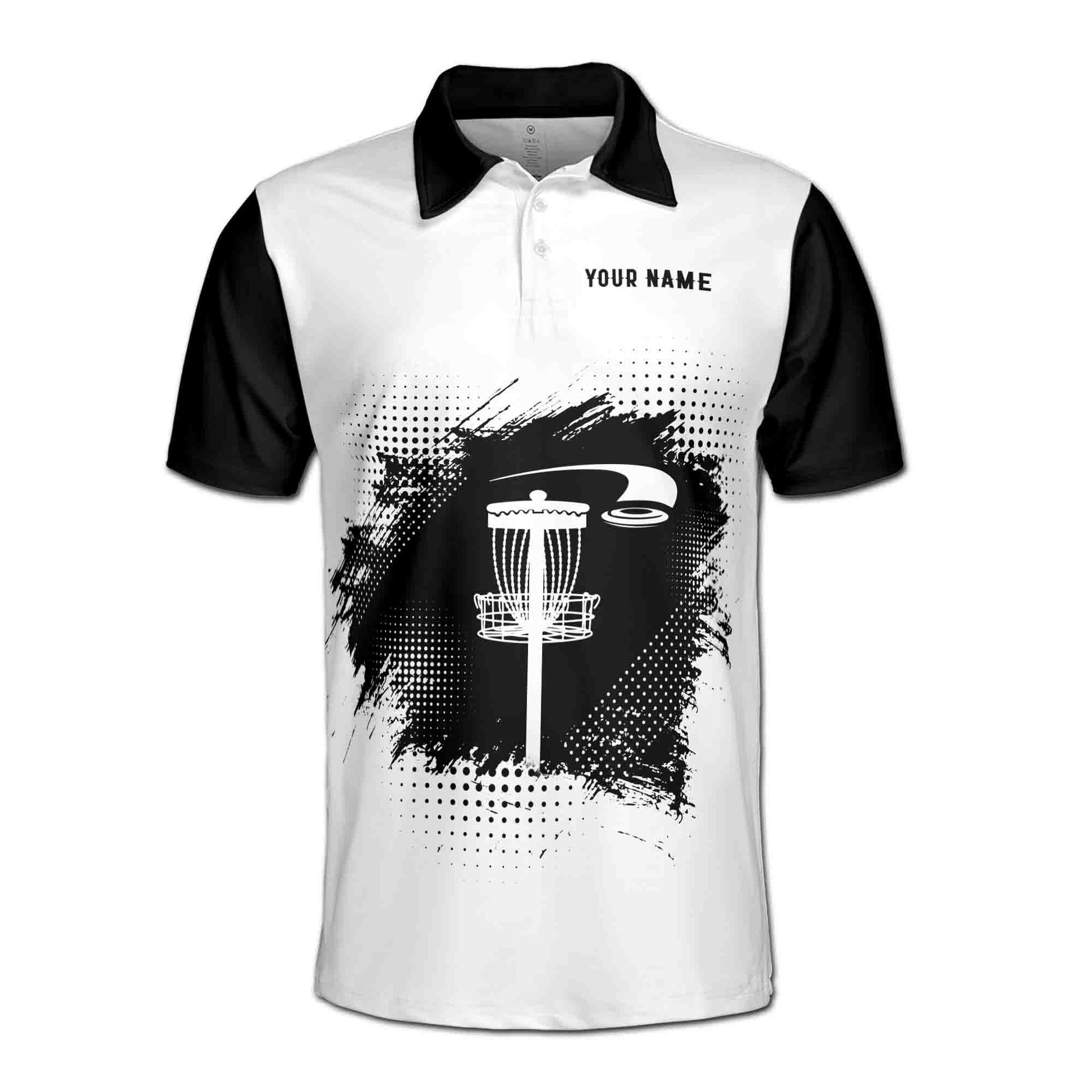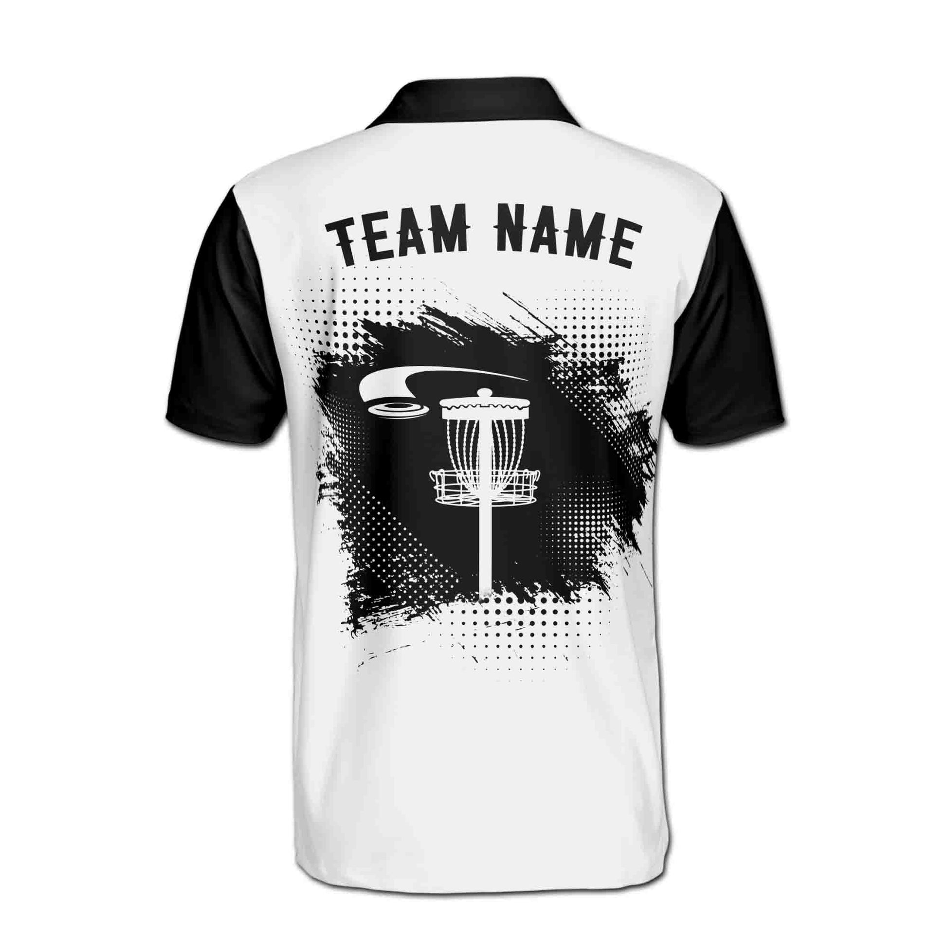 Custom Name Team Disc Golf Black White Polka Dot Men's Polo Shirt S-5XL