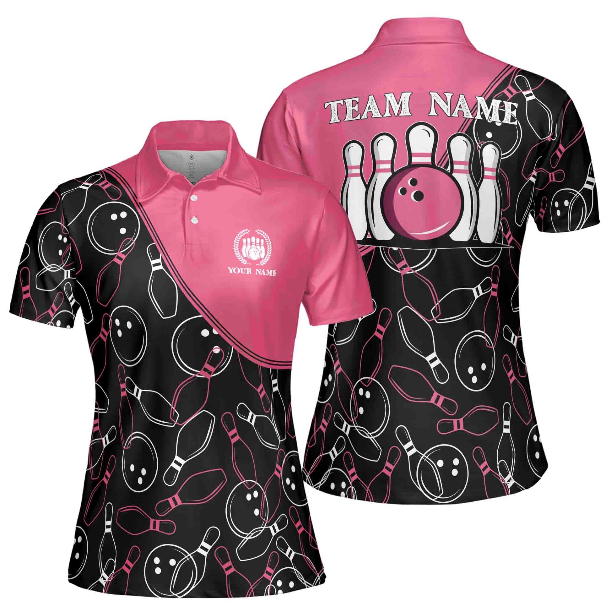 Custom Name Team Name Bowling Pins Balls Team Women's Polo Shirt S-5XL