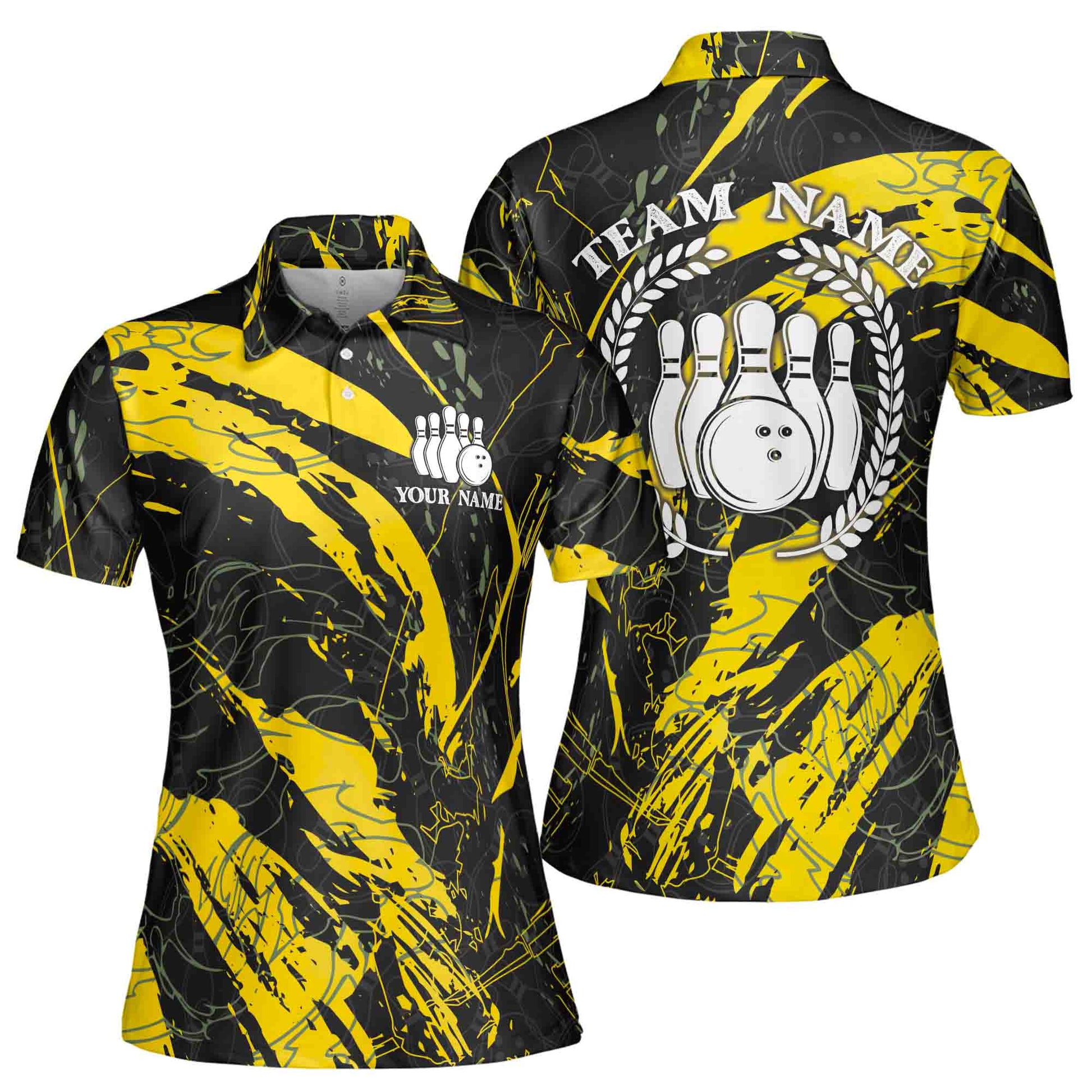 Custom Name Team Name Colorful Graphic Art Bowling Team Women's Polo Shirt S-5XL