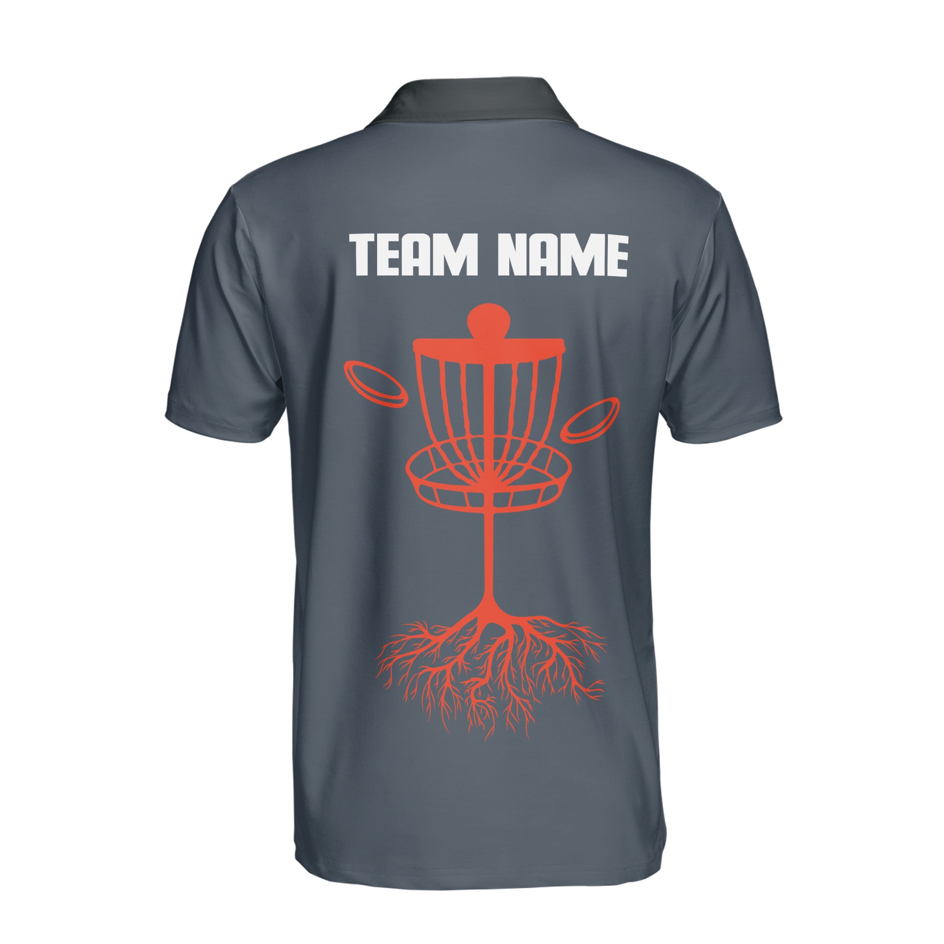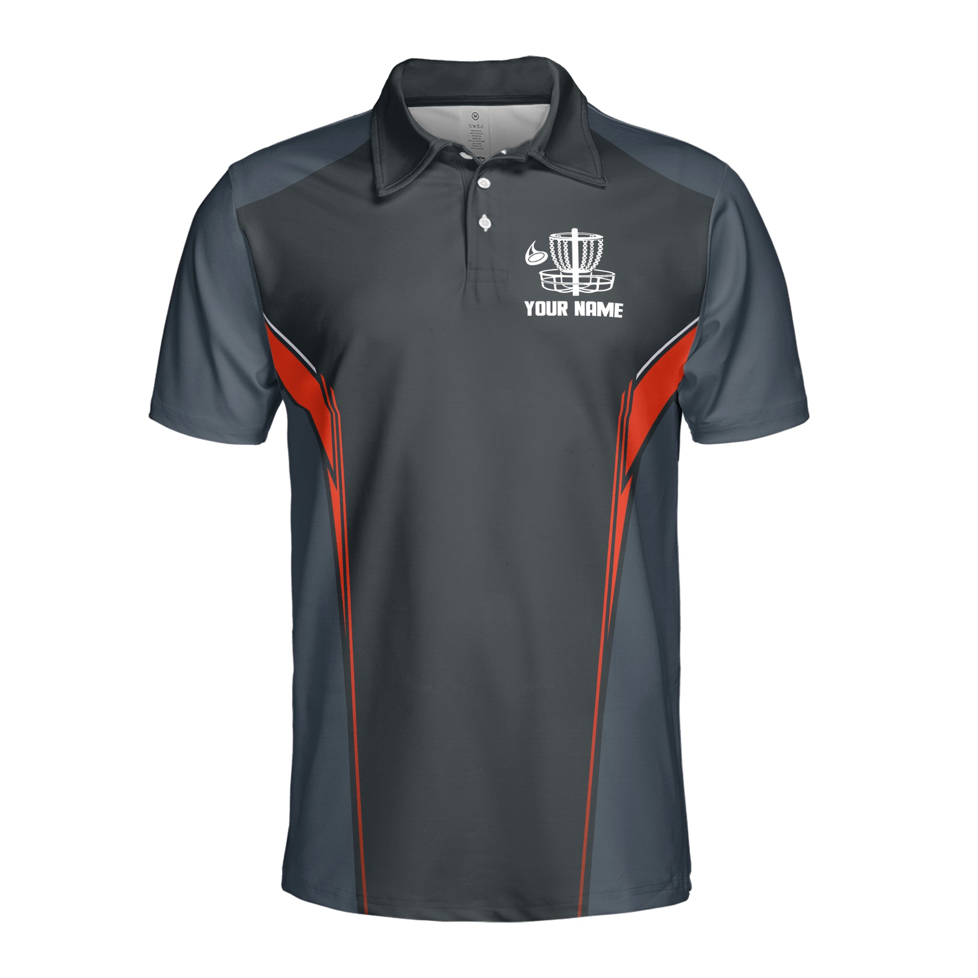 Custom Name Team Disc Golf Player Black Gray Red Men's Polo Shirt S-5XL
