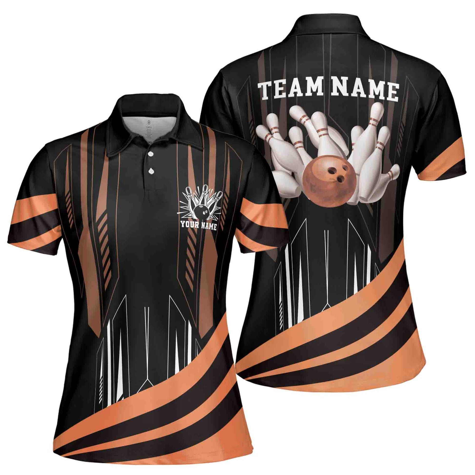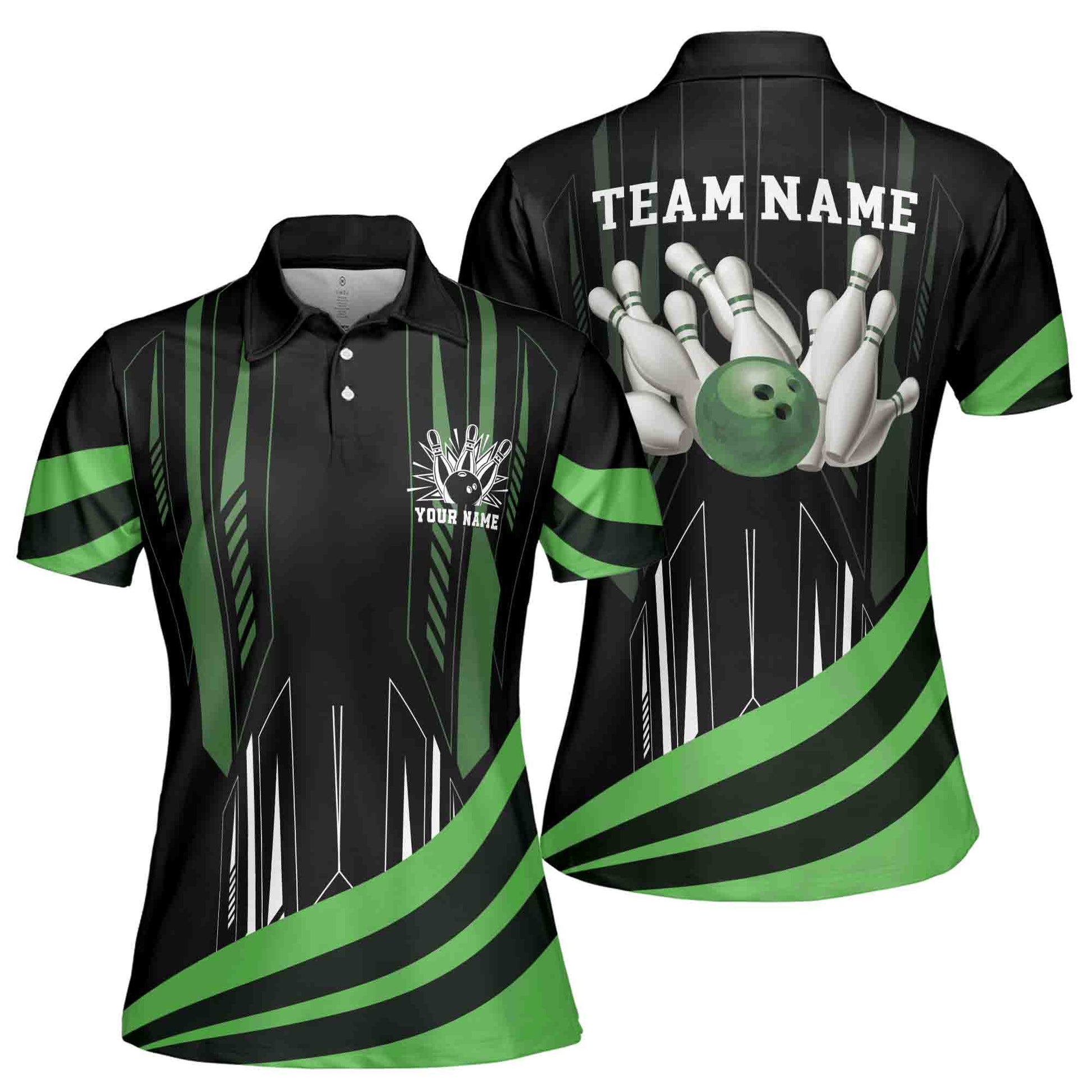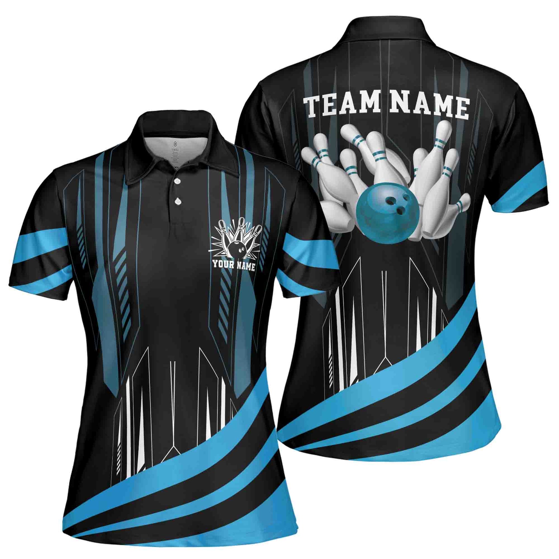 Custom Name, Team Name MultiColor Bowling Ball Women's Polo Shirt S-5XL