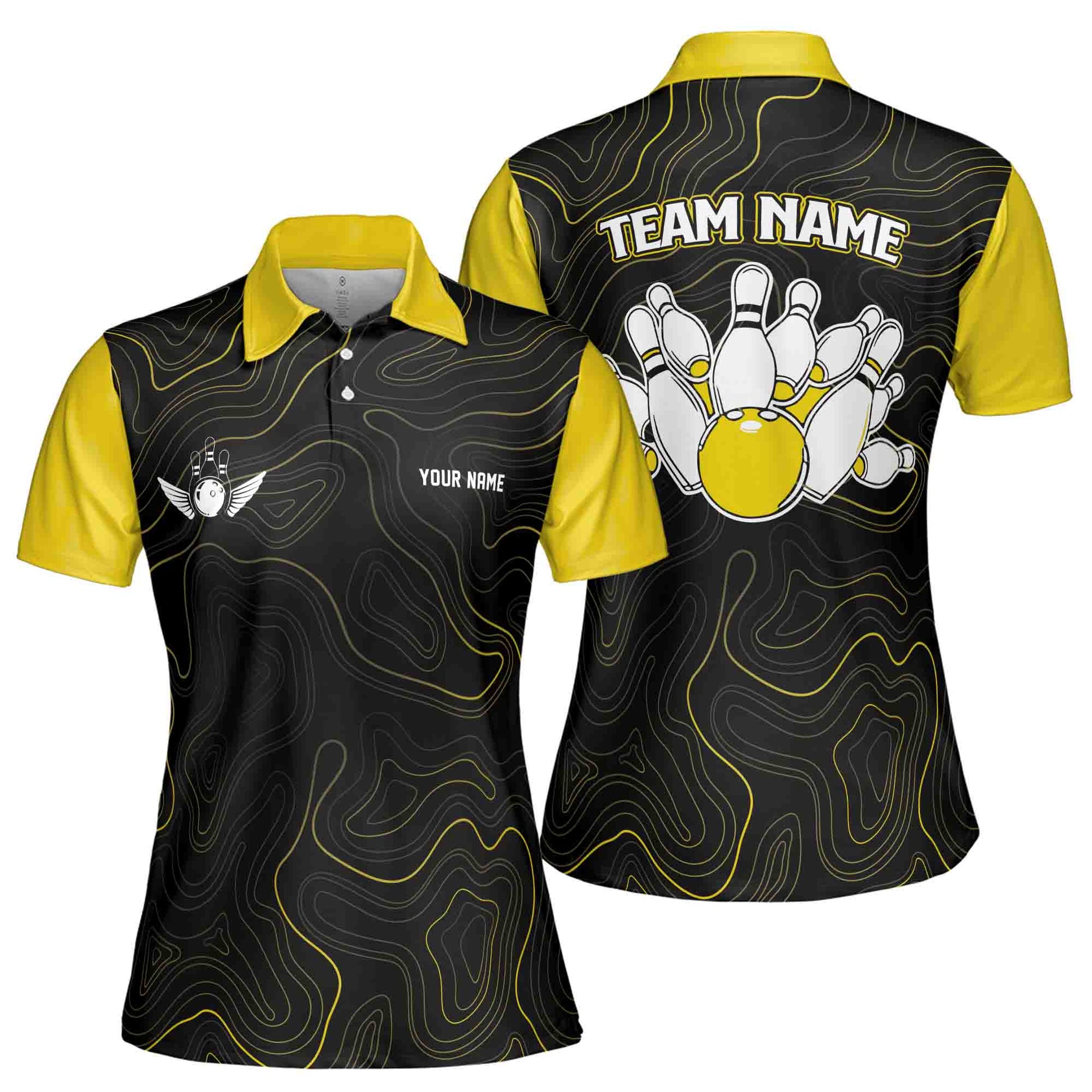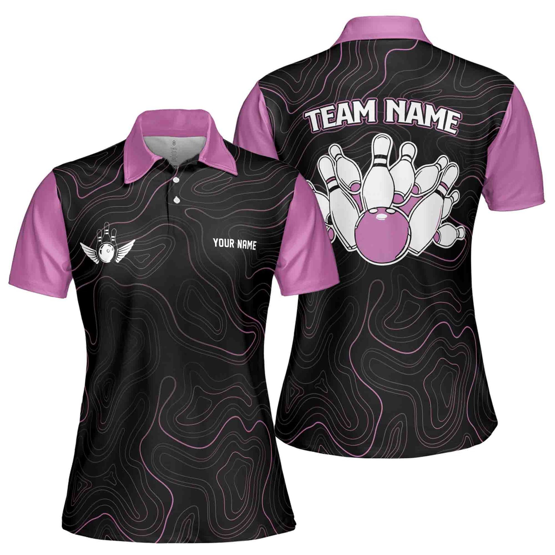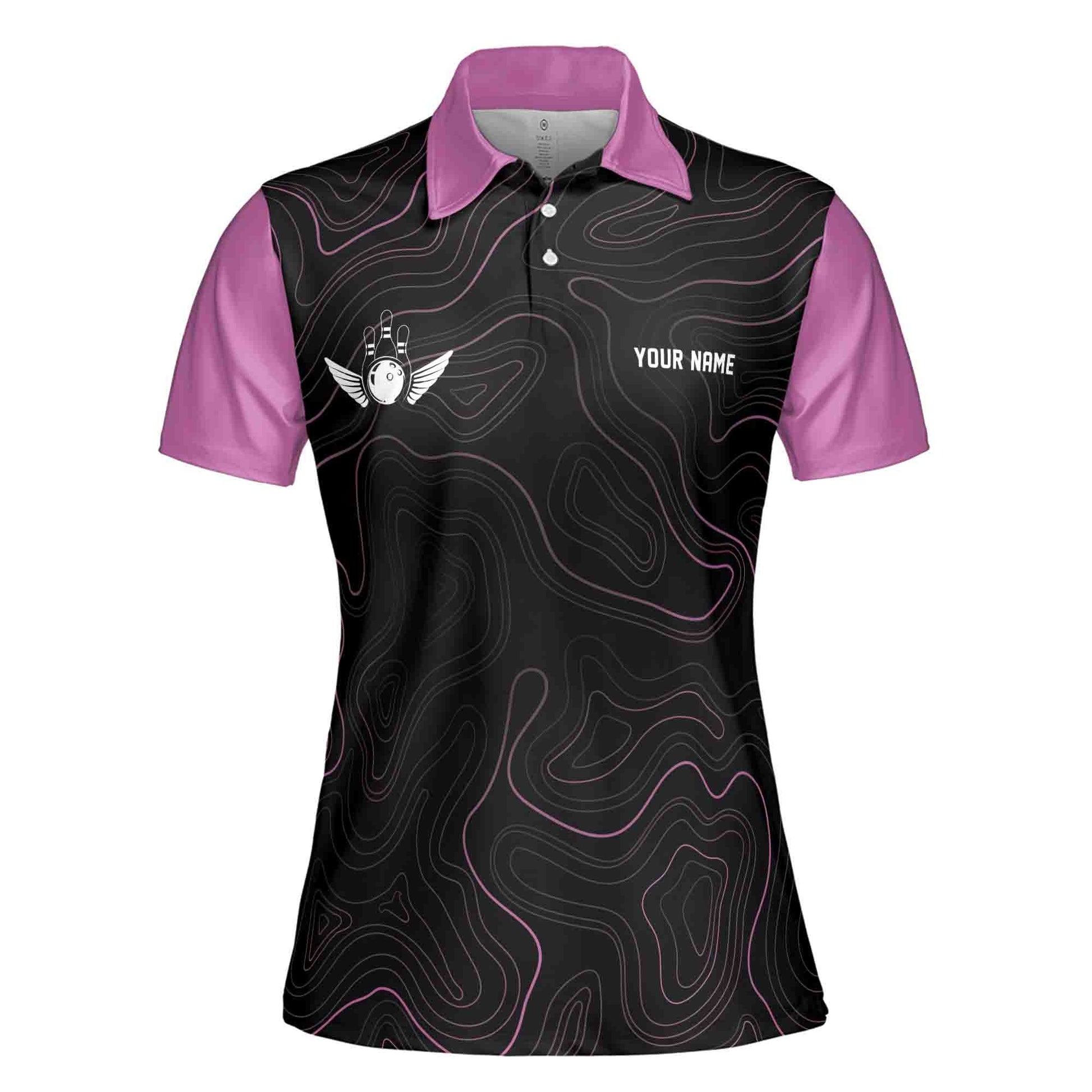 Custom Name, Team Name Multicolor Pattern Bowling Ball Camo Women's Polo Shirt S-5XL